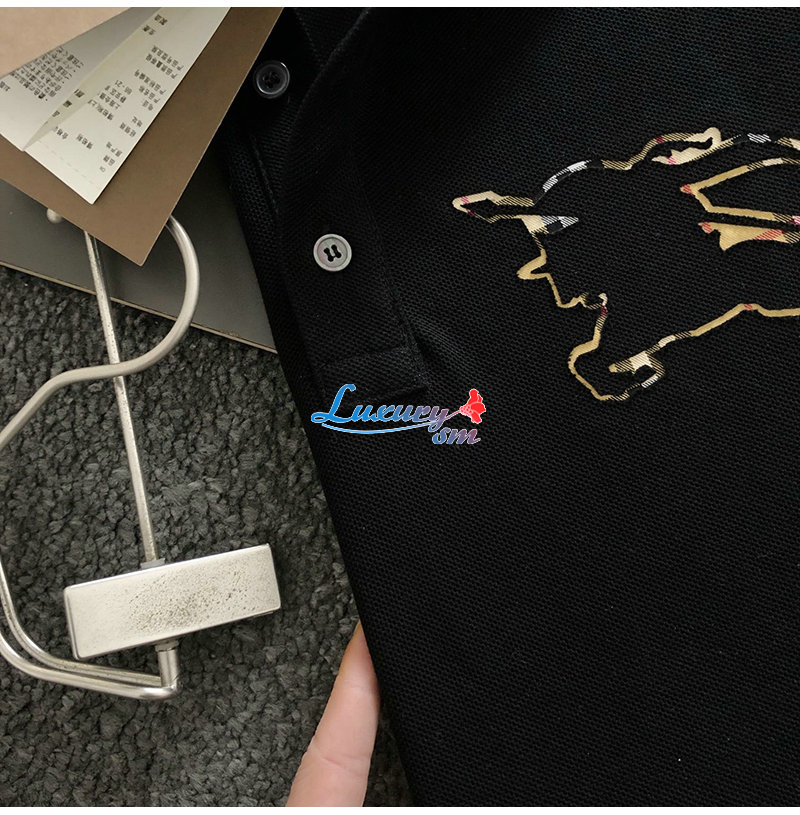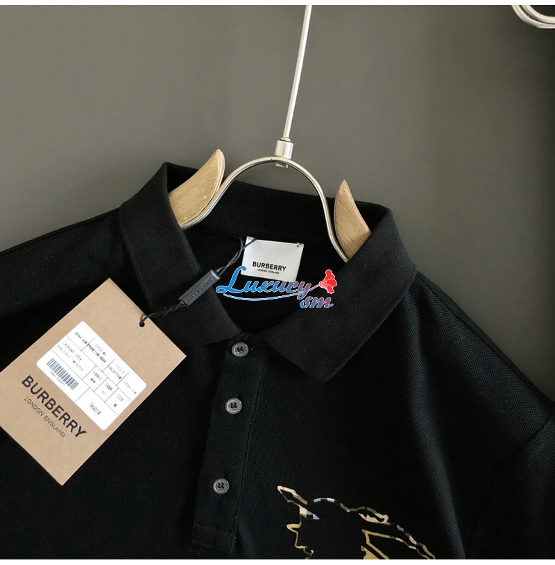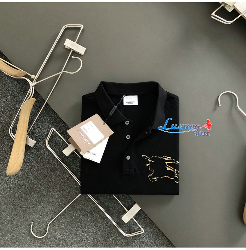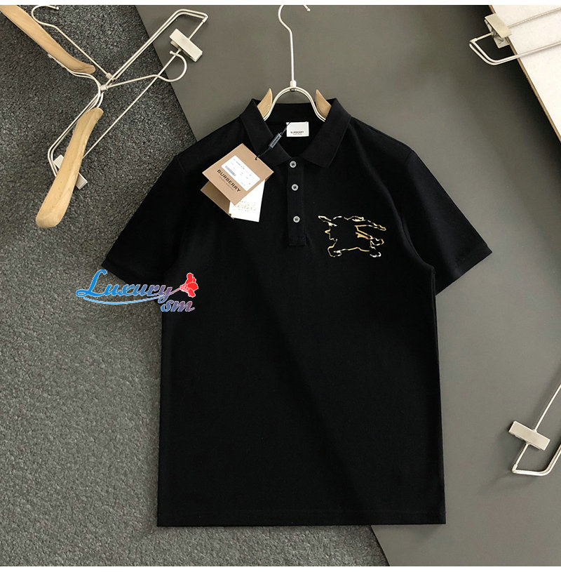 BURBERRY-03146 버버리 블랙 아플리케 장식 폴로 티셔츠 남성용