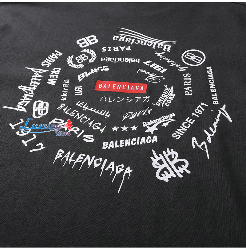 BALENCIAGA-031712 발렌시아가 블랙 프린트 장식 티셔츠 남여공용