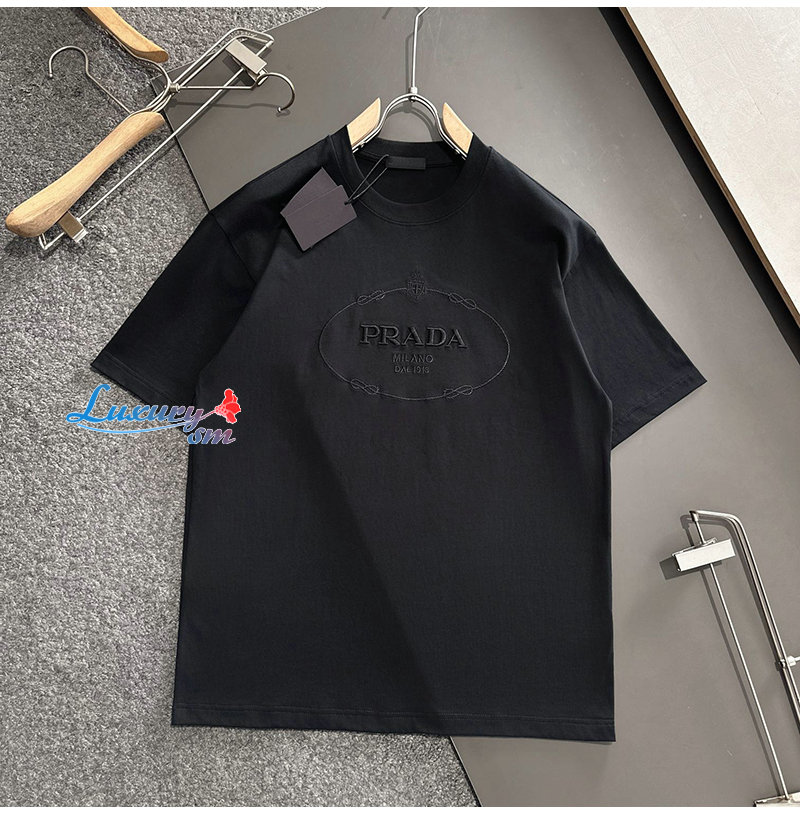 PRADA-031712 프라다 블랙 아플리케 장식 티셔츠 남성용