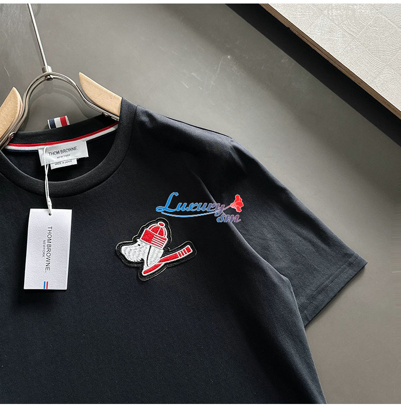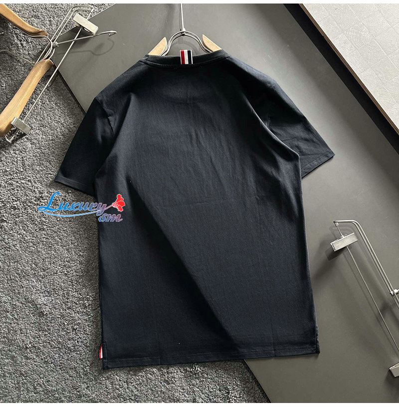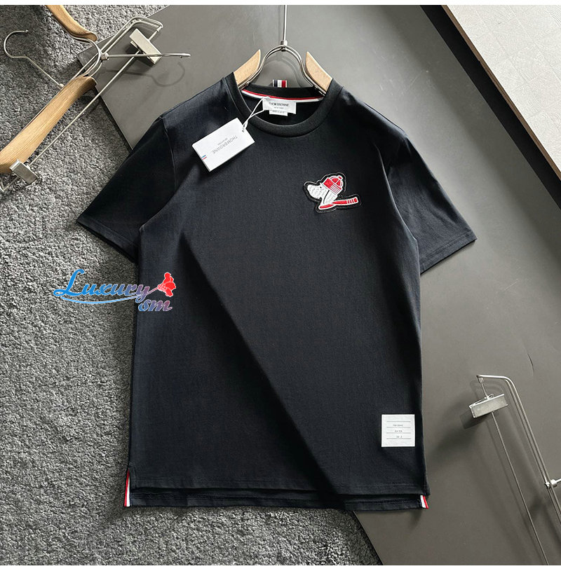 THOM BROWNE-031918 톰 브라운 블랙 아플리케 장식 티셔츠 남성용