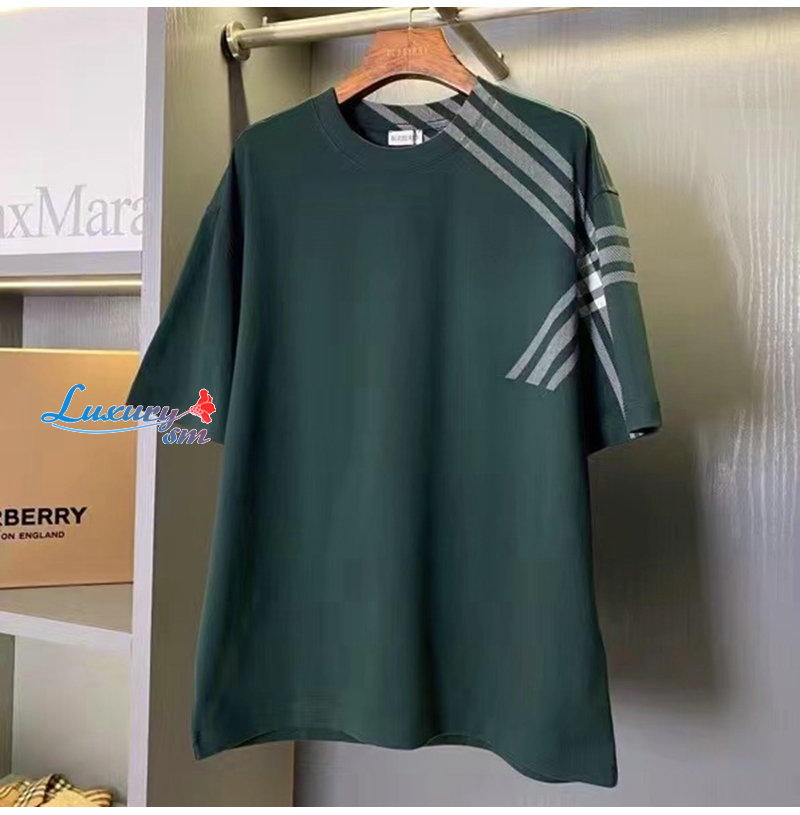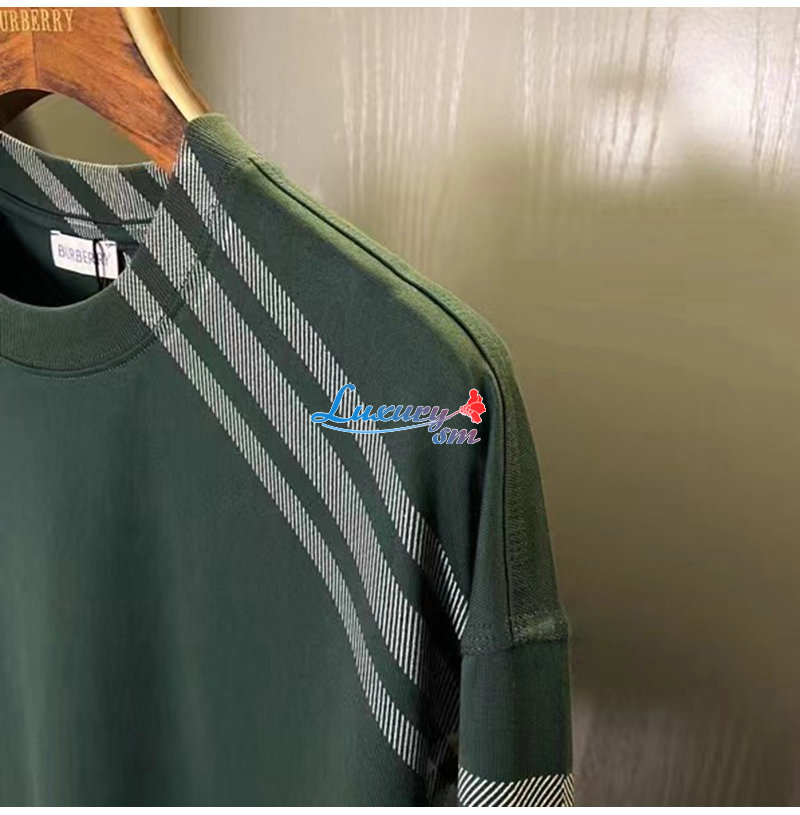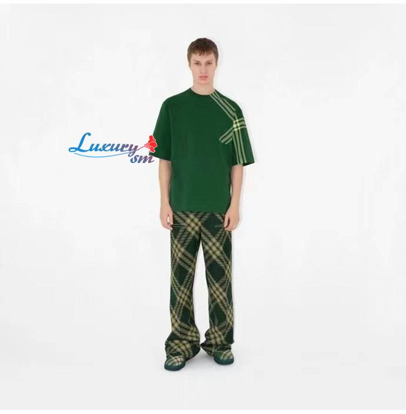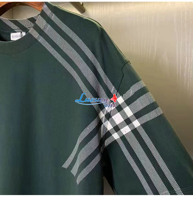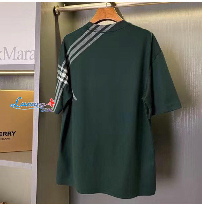 BURBERRY-80820521 버버리 그린 체크 슬리브 코튼 티셔츠 남성용