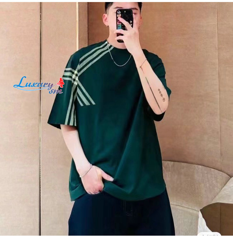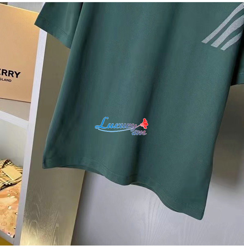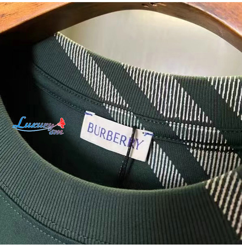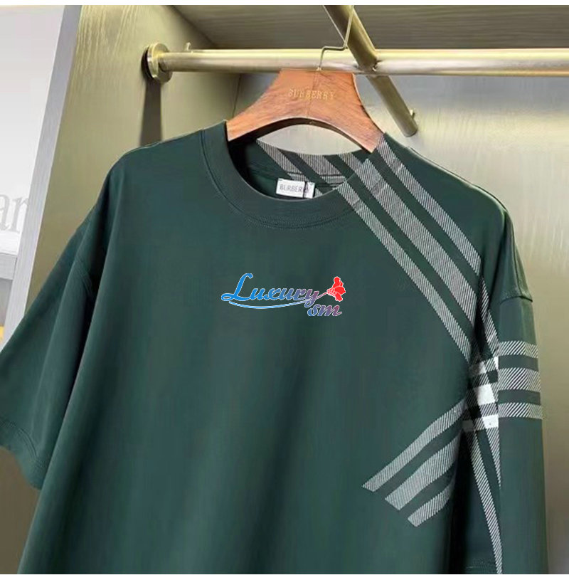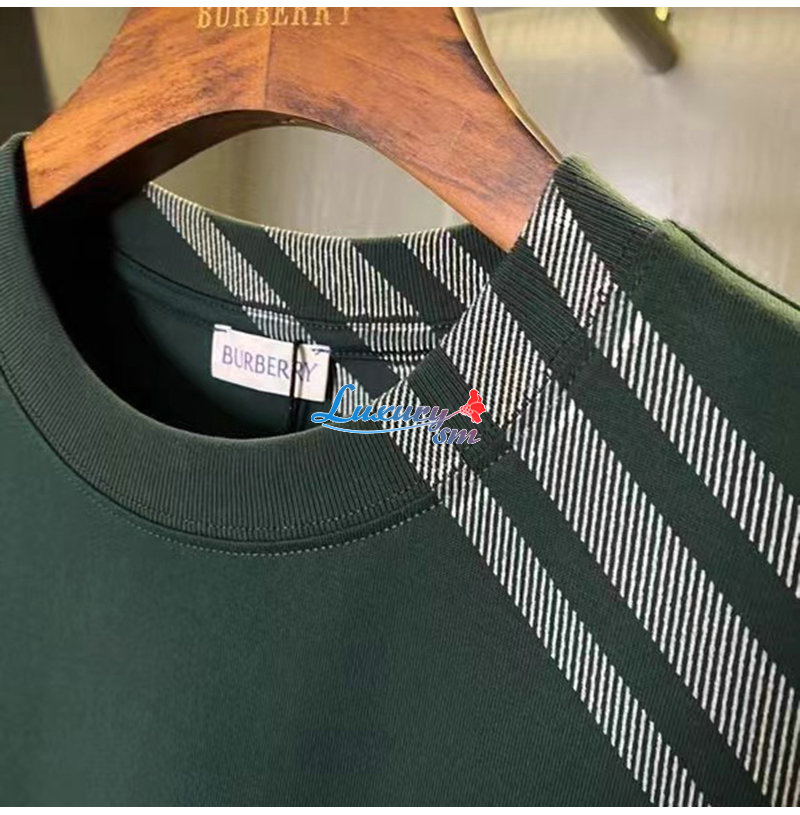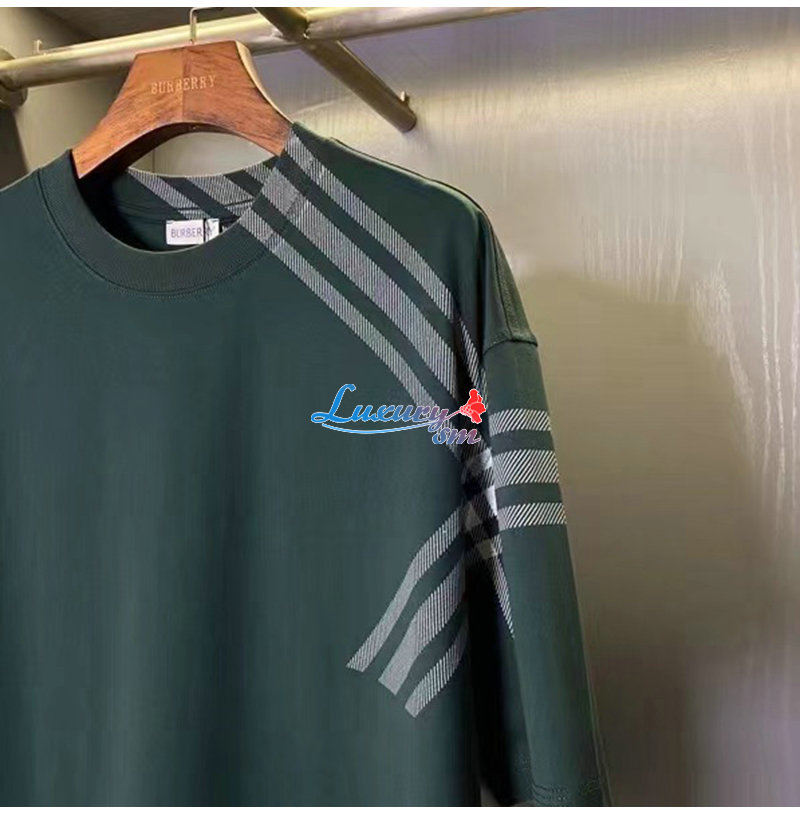 BURBERRY-80820521 버버리 그린 체크 슬리브 코튼 티셔츠 남성용