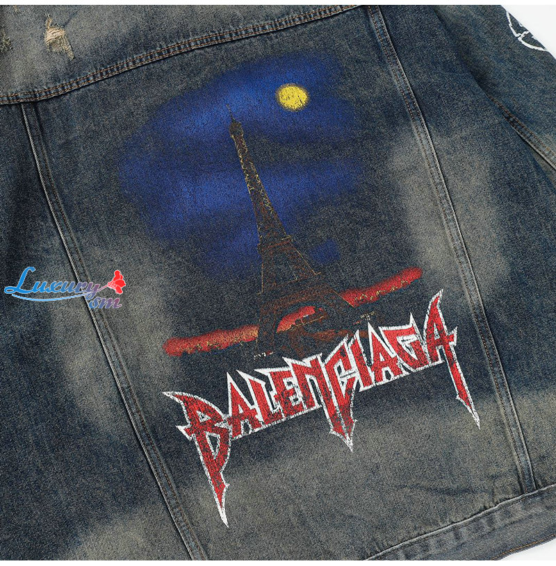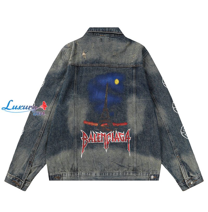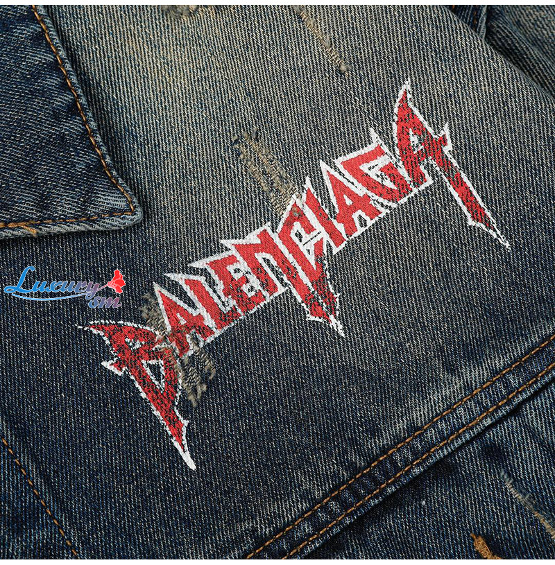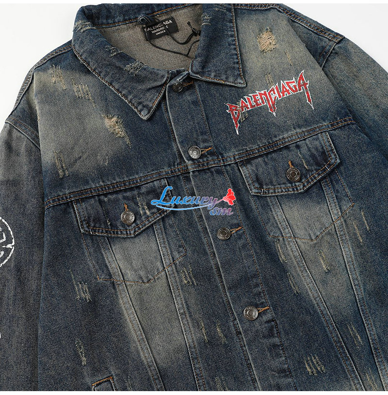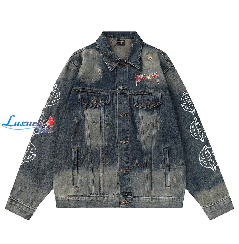 BALENCIAGA-03065 발렌시아가 블루 프린트 장식 데님 셔츠 남여공용