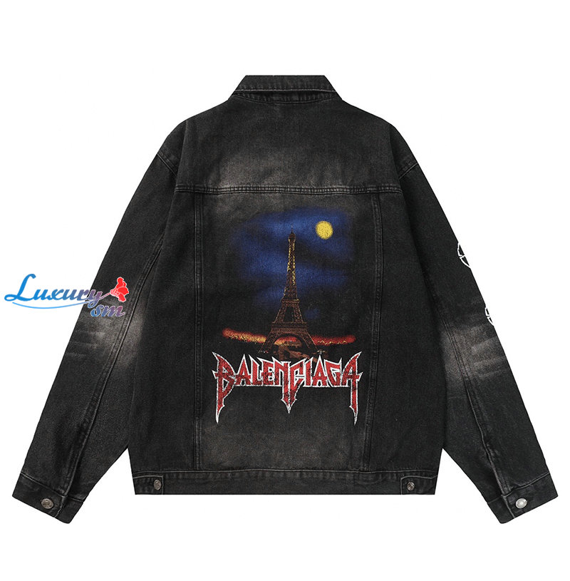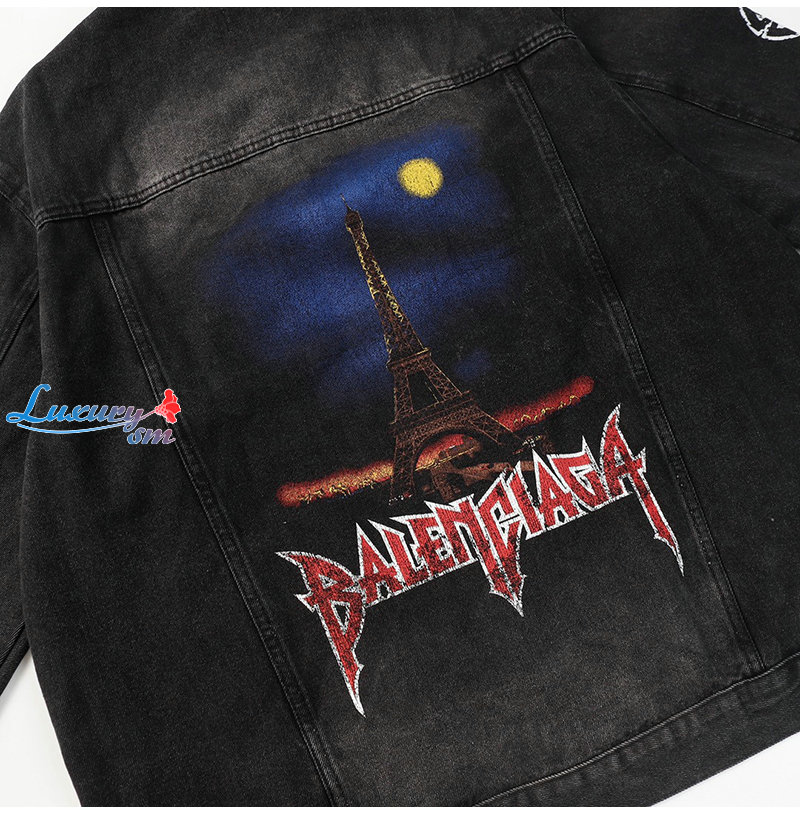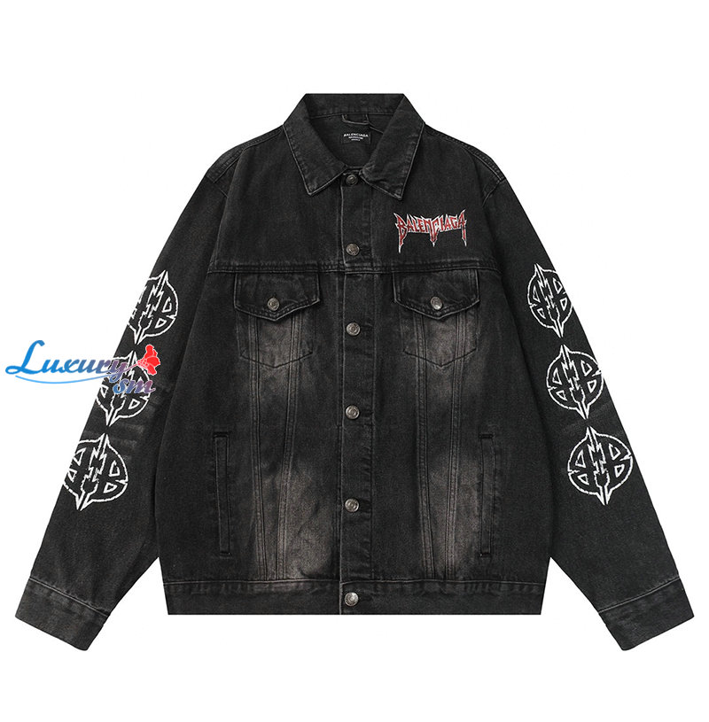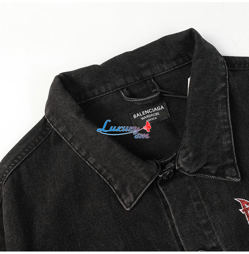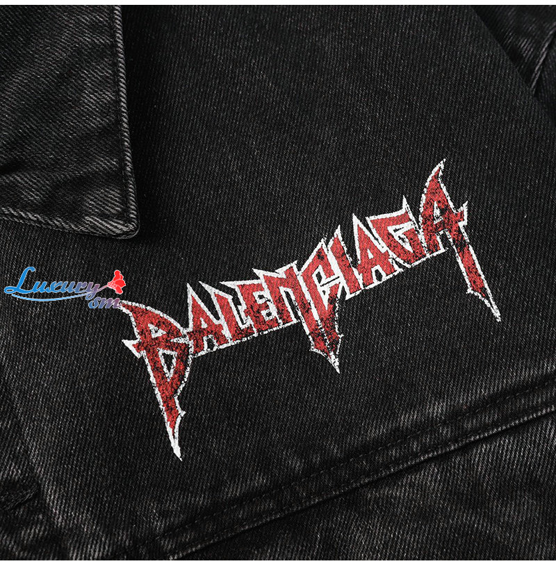 BALENCIAGA-03066 발렌시아가 블랙 프린트 장식 데님 셔츠 남여공용