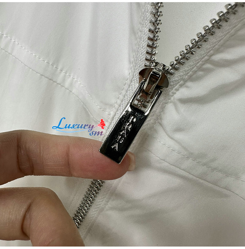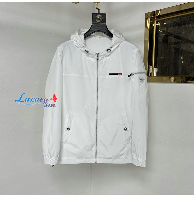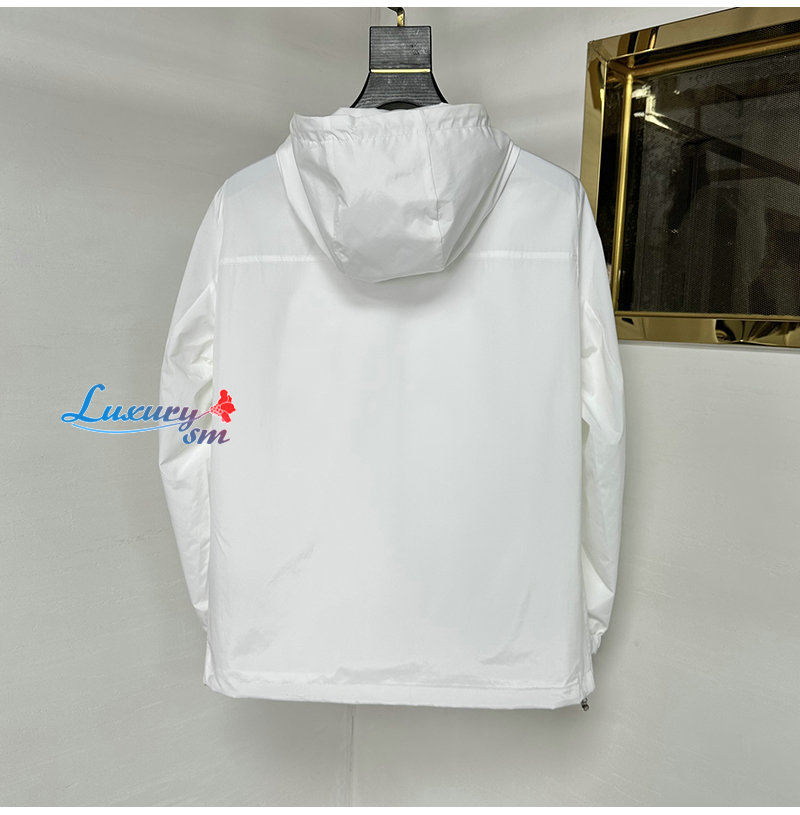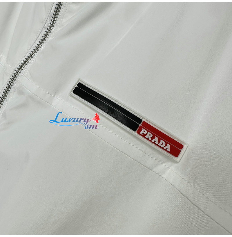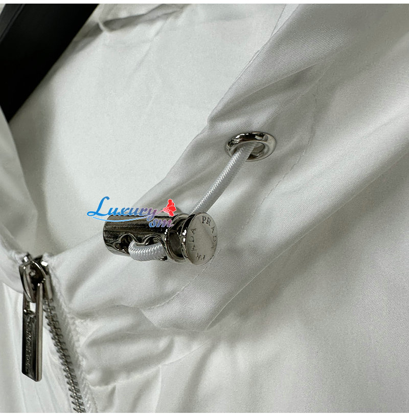 PRADA-03229 프라다 화이트 트라이앵글 로고 바람막이 후드 재킷 남성용
