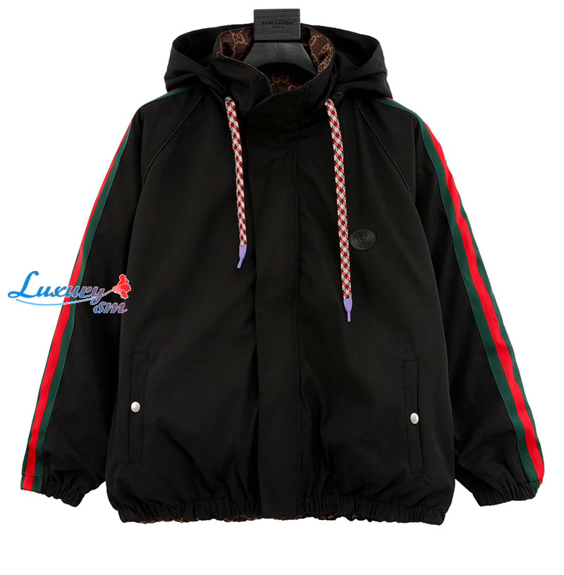 GUCCI-032311 구찌 블랙 Web 스트라이프 장식 바람막이 후드 재킷 남성용