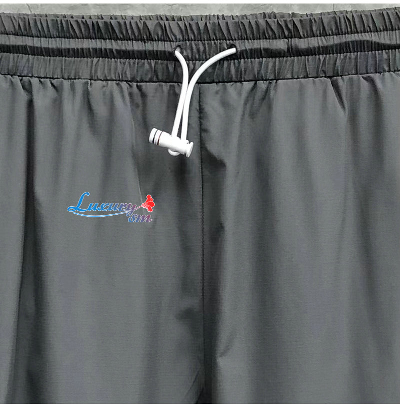 THOM BROWNE-032819 톰 브라운 그레이 스트라이프 장식 트레이닝 팬츠 남성용