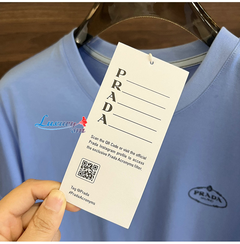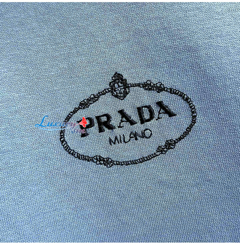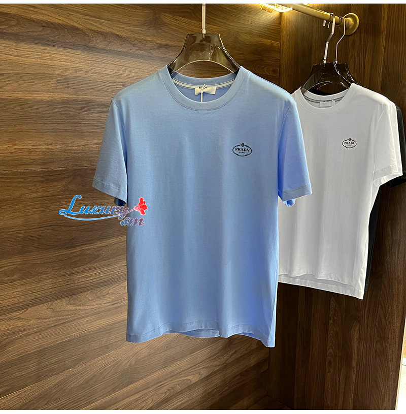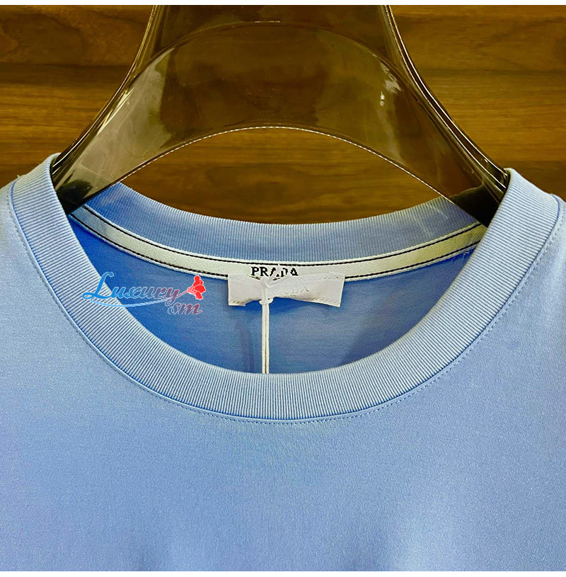 PRADA-04267 프라다 라이트 블루 로고 아플리케 장식 티셔츠 남성용