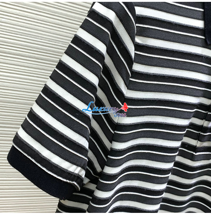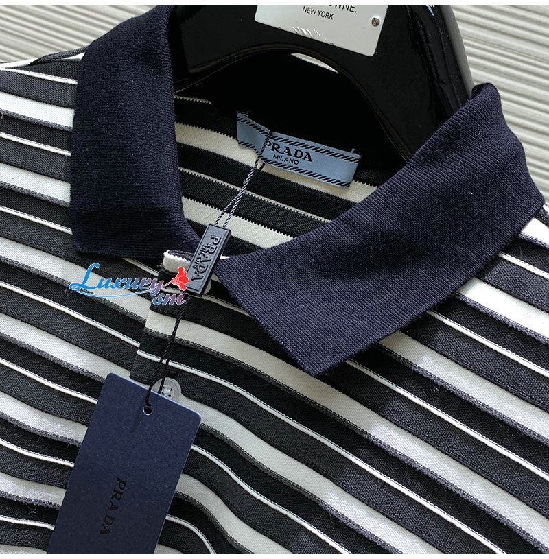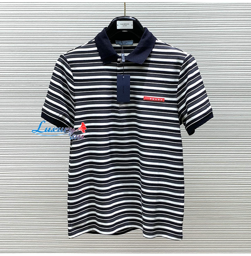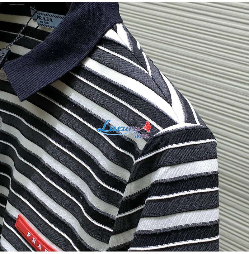 PRADA-05056 프라다 블랙/화이트 스트라이프 폴로 티셔츠 남성용