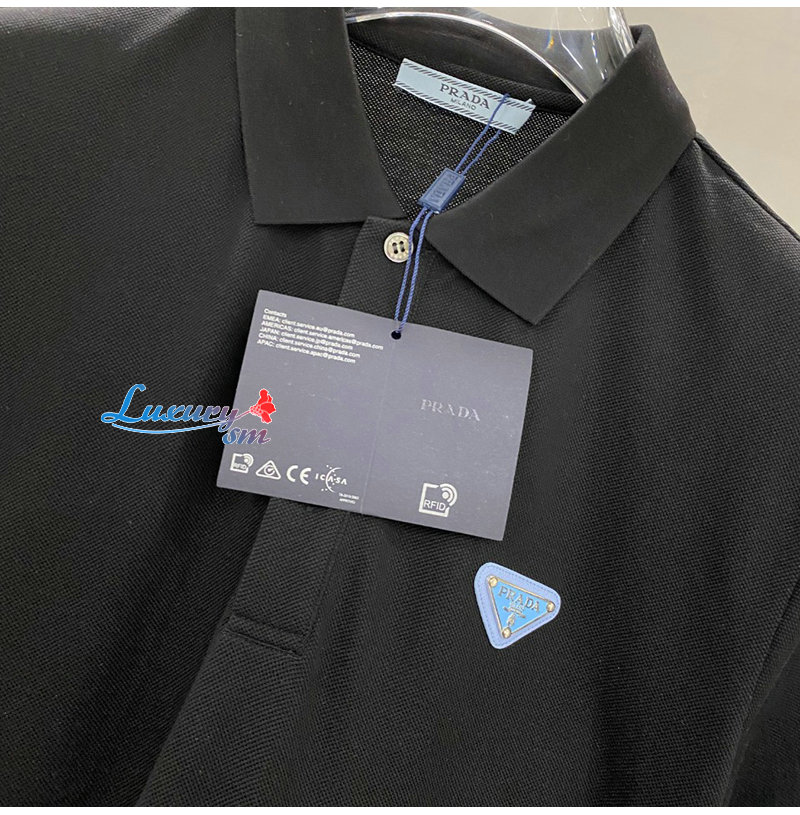 PRADA-05059 프라다 블랙 트라이앵글 로고 폴로 티셔츠 남성용