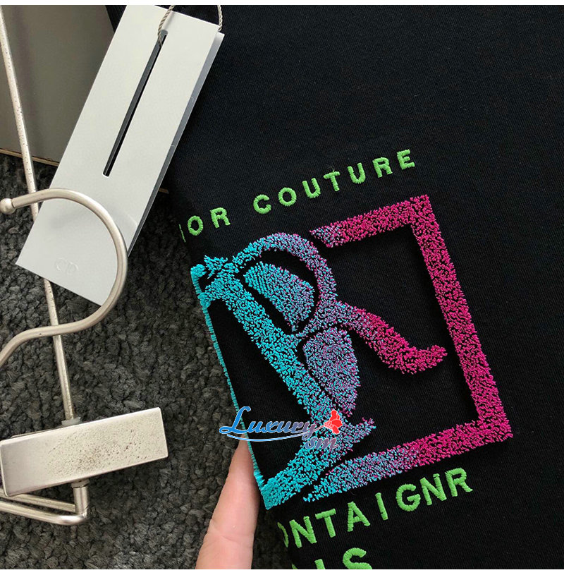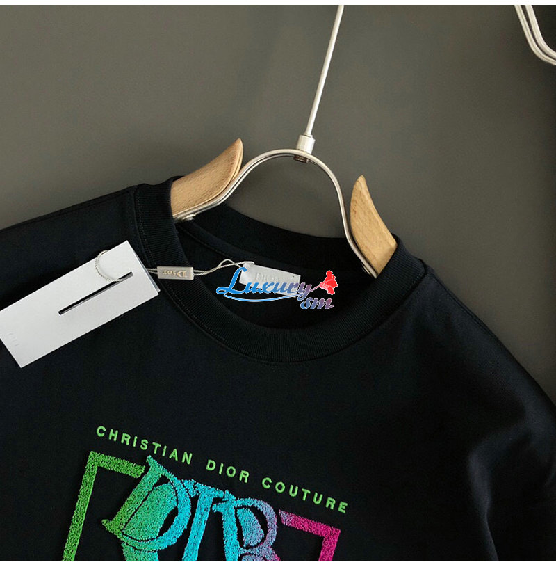 DIOR-05083 디올 블랙 아플리케 장식 티셔츠