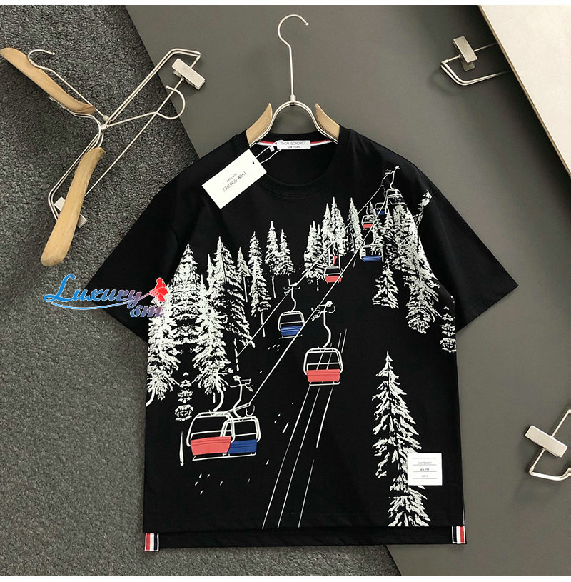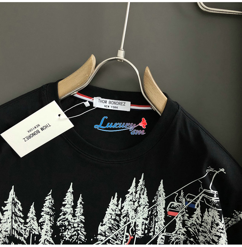 THOM BROWNE-05087 톰 브라운 블랙 프린트 장식 티셔츠 남성용