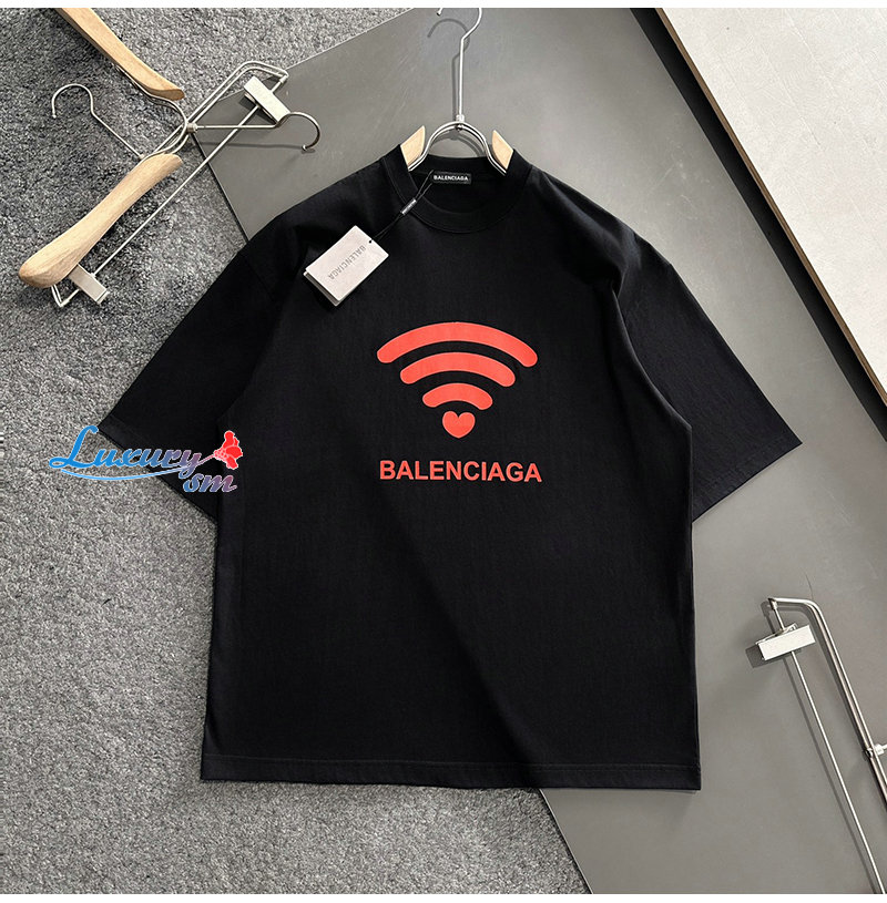 BALENCIAGA-05276 발렌시아가 블랙 프린트 장식 티셔츠 남여공용