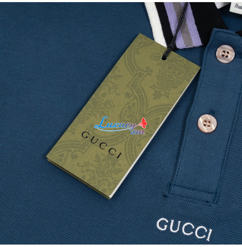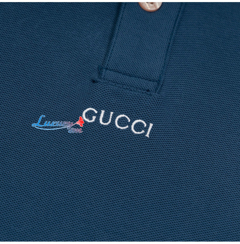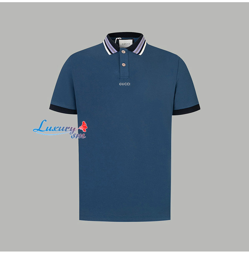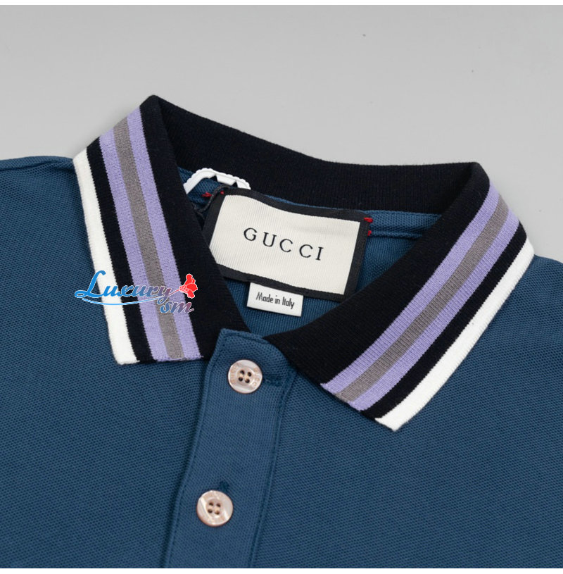 GUCCI-06031 구찌 블루 코튼 폴로 티셔츠 남성용