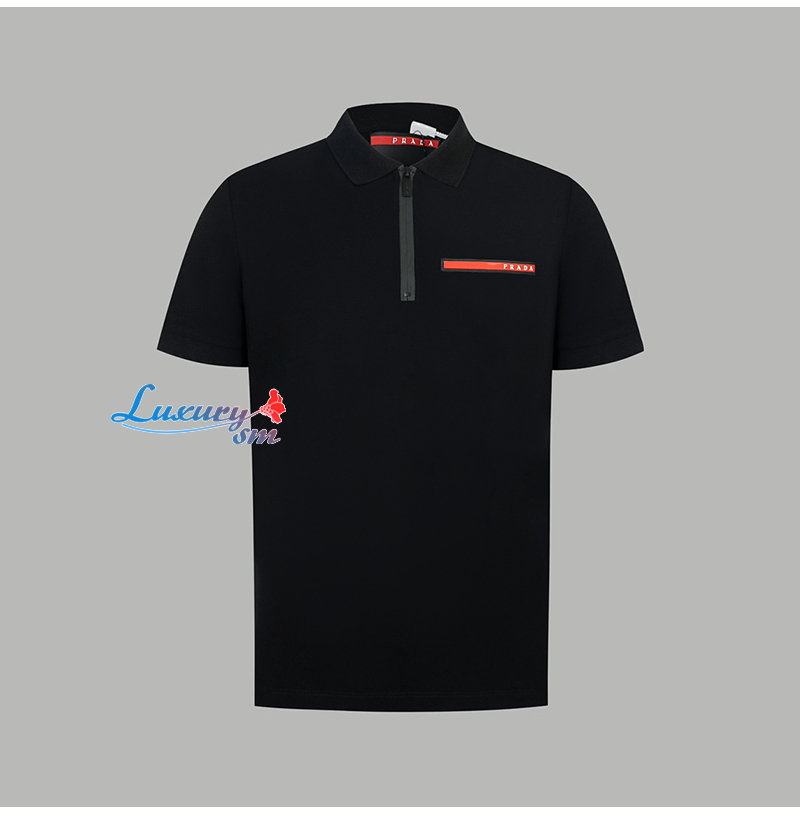 PRADA-06014 프라다 블랙 코튼 폴로 티셔츠 남성용