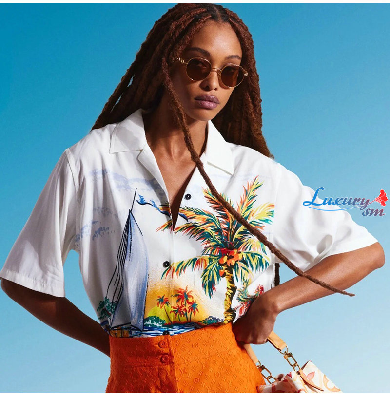 LOUIS VUITTON-06115 루이비통 화이트 야자수 프린트 장식 셔츠 남여공용