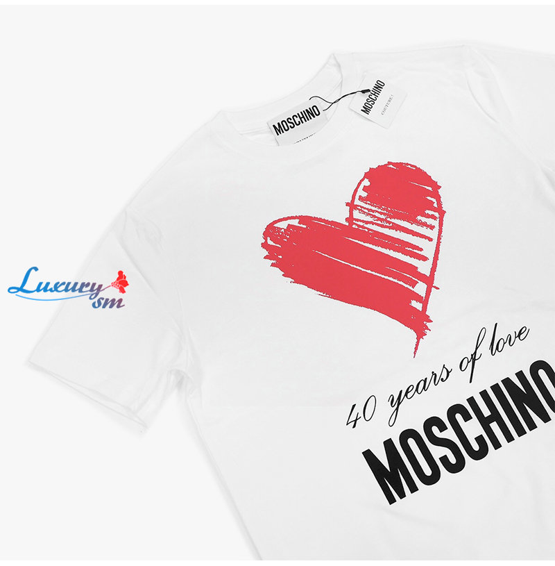 MOSCHINO-06135 모스치노 화이트 프린트 장식 티셔츠 남여공용