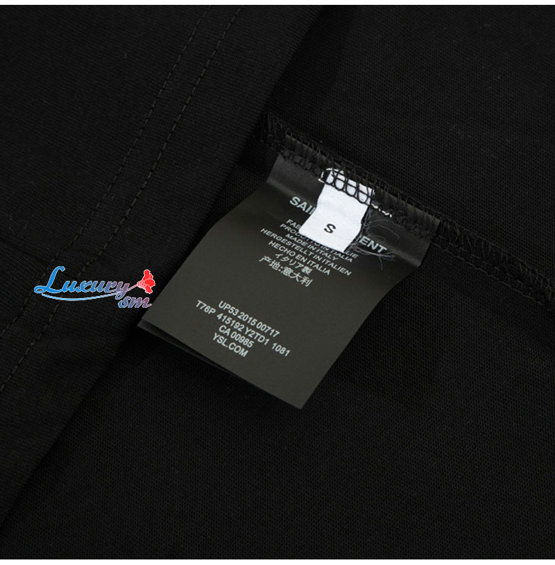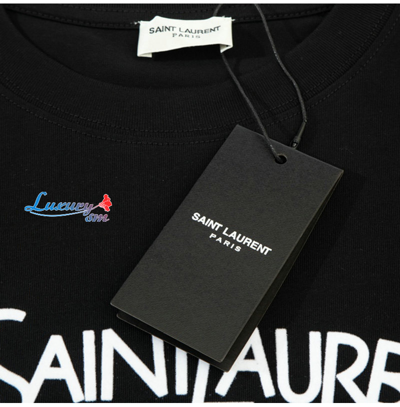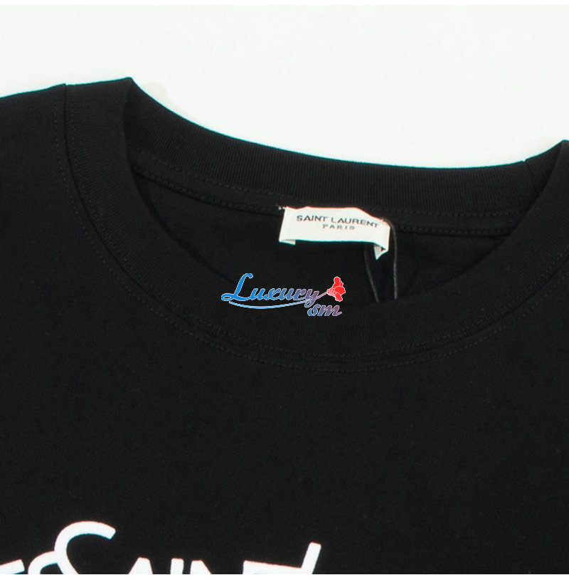 SAINT LAURENT-06131 생 로랑 블랙 로고 아플리케 장식 티셔츠 남여공용