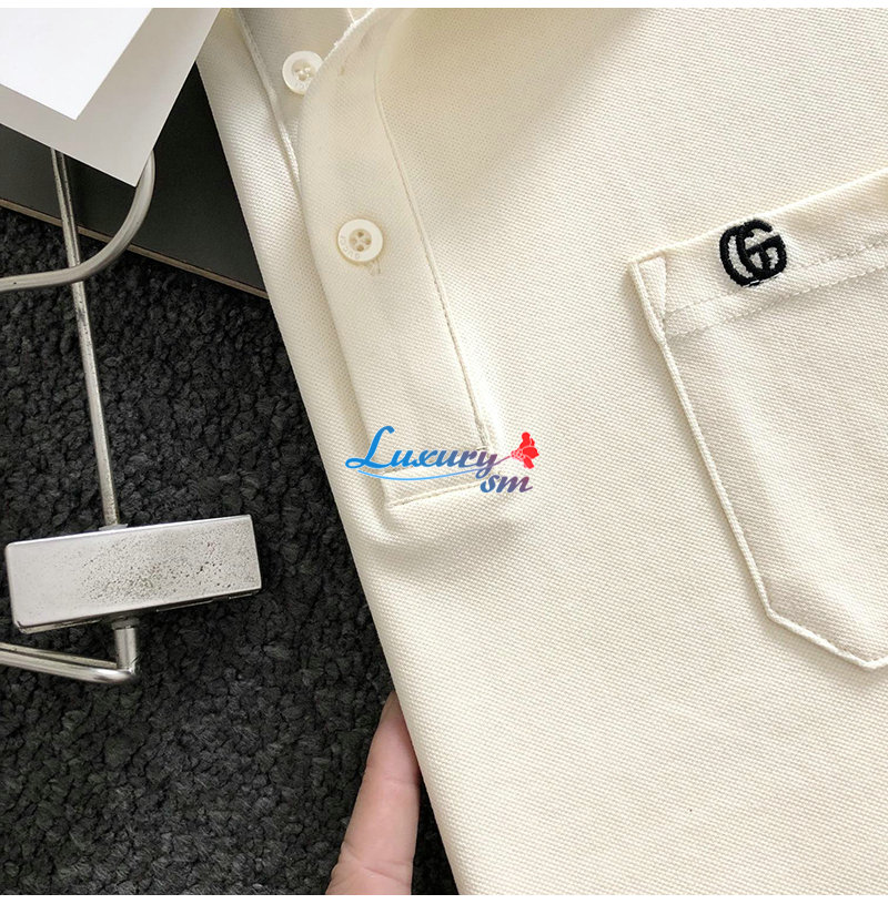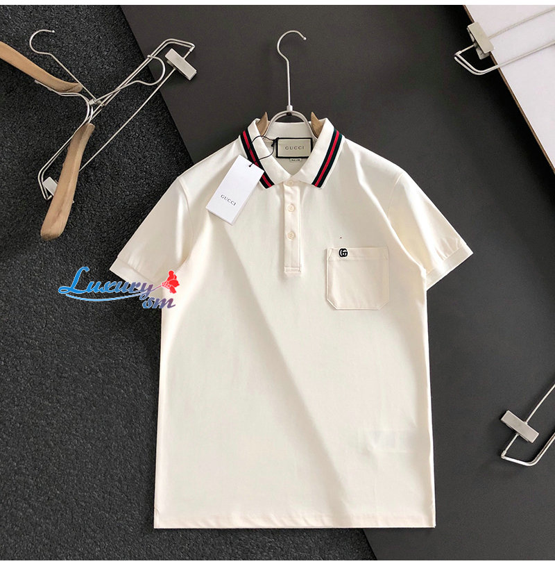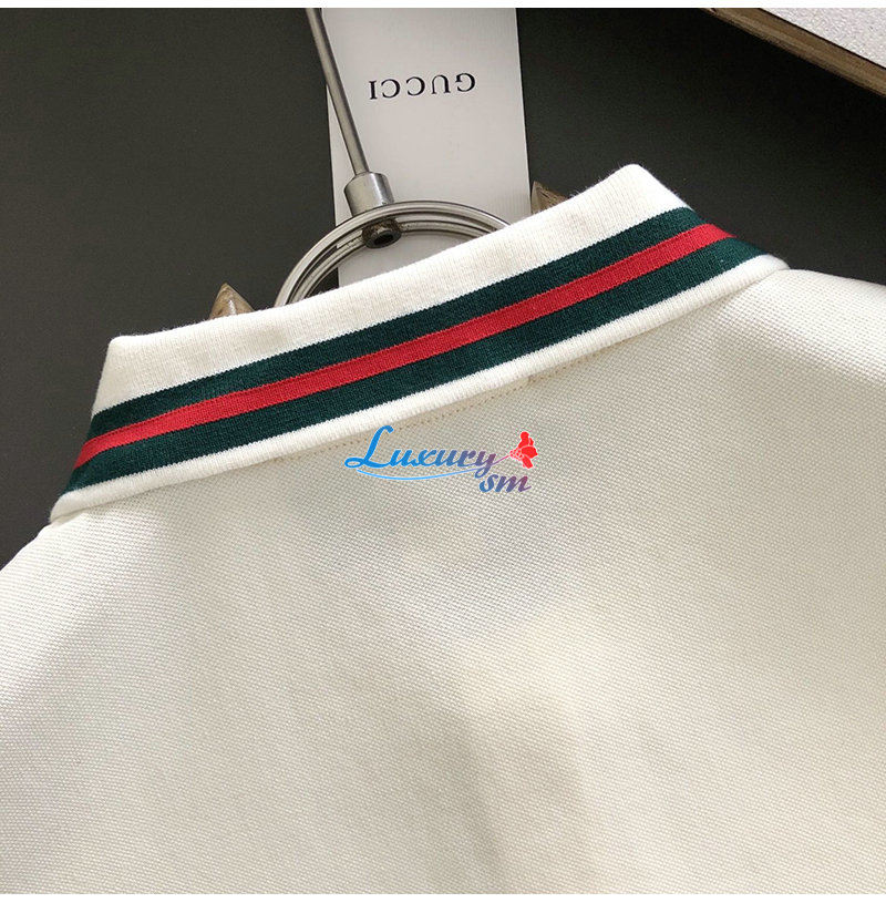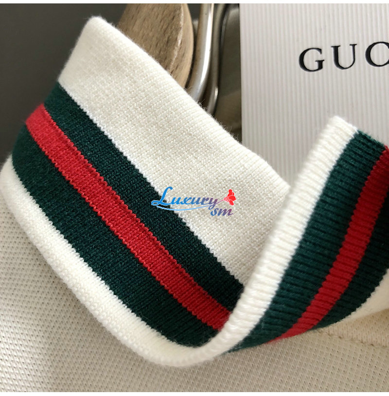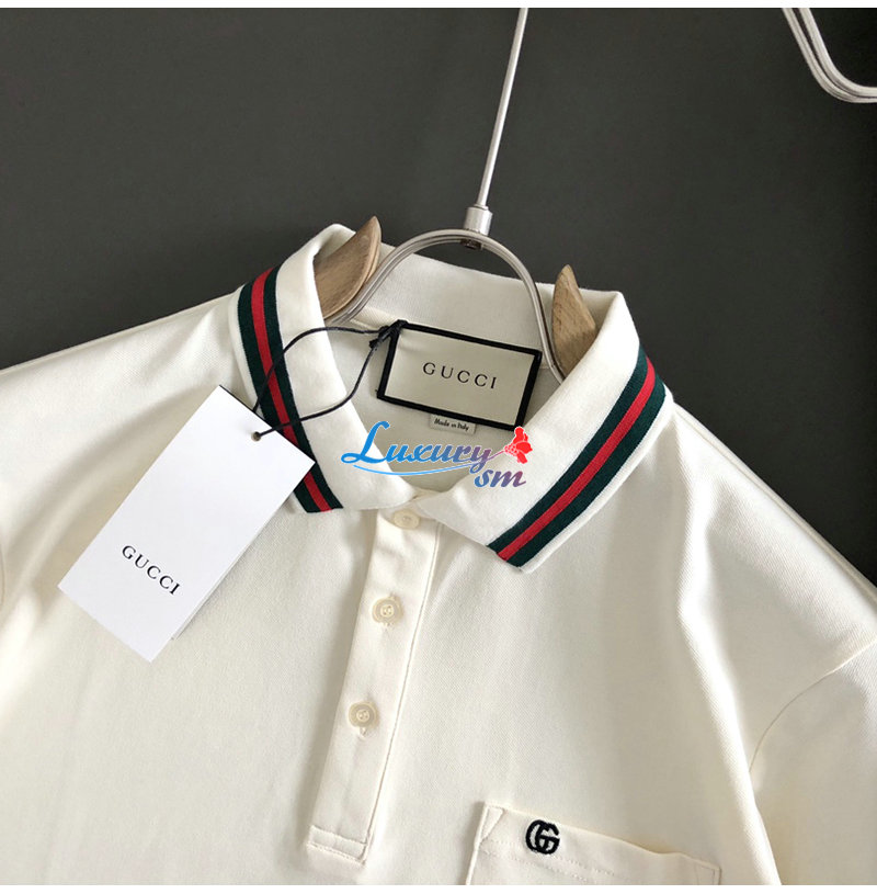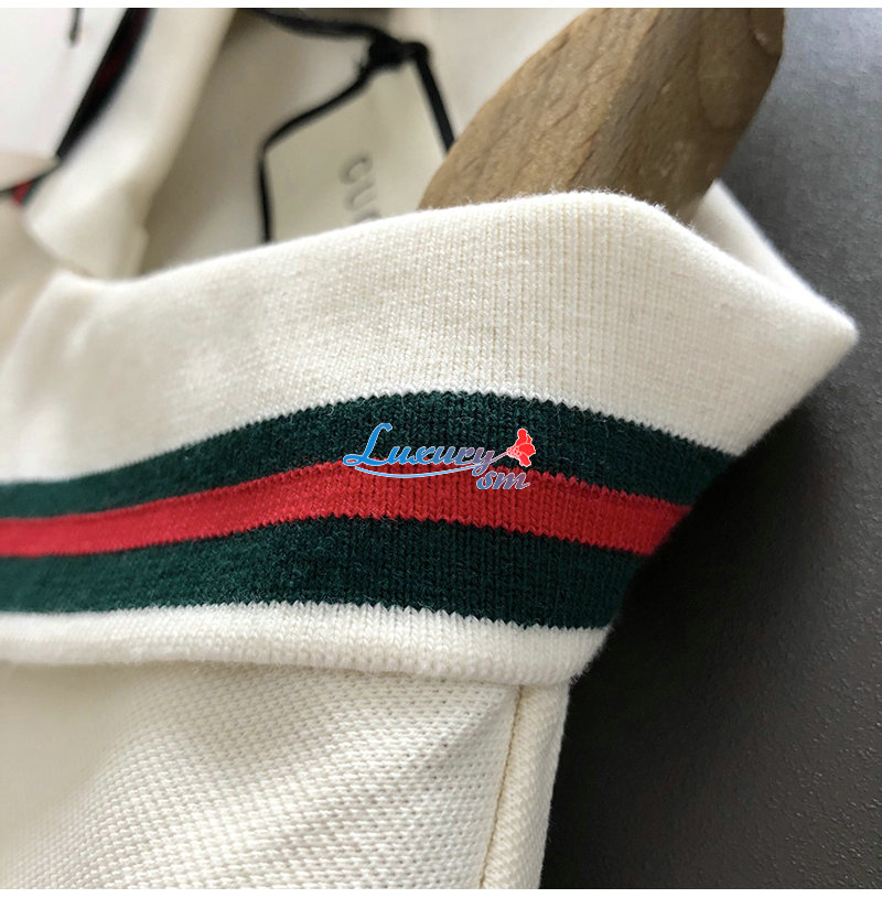 GUCCI-06133 구찌 화이트 Web 스트라이프 장식 폴로 티셔츠 남성용