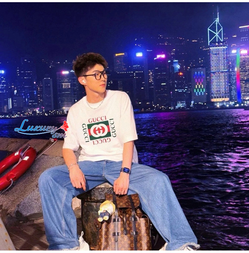GUCCI-062313 구찌 화이트/블루 프린트 장식 티셔츠 남여공용
