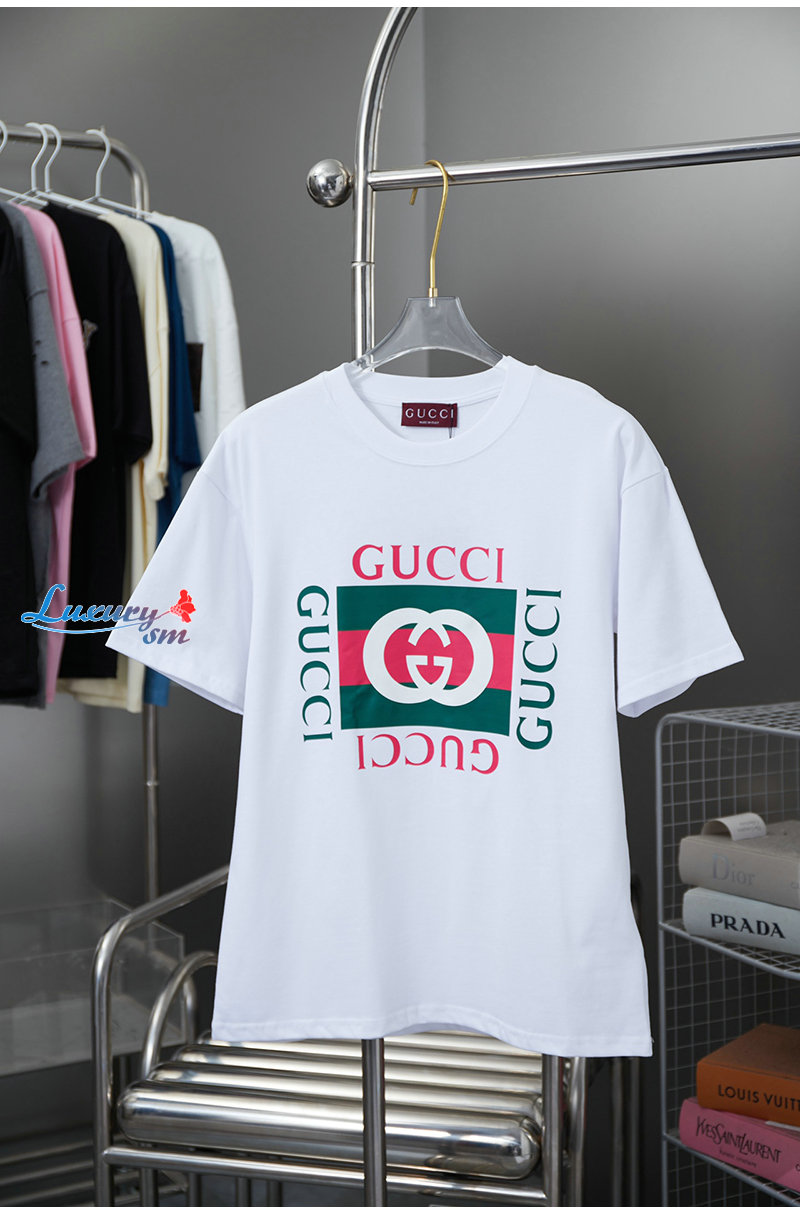 GUCCI-062312 구찌 화이트/그린 프린트 장식 티셔츠 남여공용