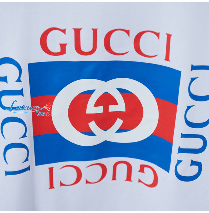GUCCI-062313 구찌 화이트/블루 프린트 장식 티셔츠 남여공용