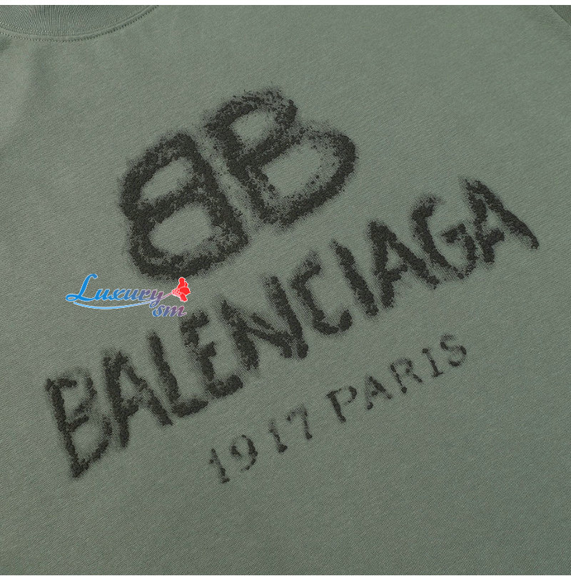 BALENCIAGA-06223 발렌시아가 그린 프린트 장식 티셔츠 남여공용