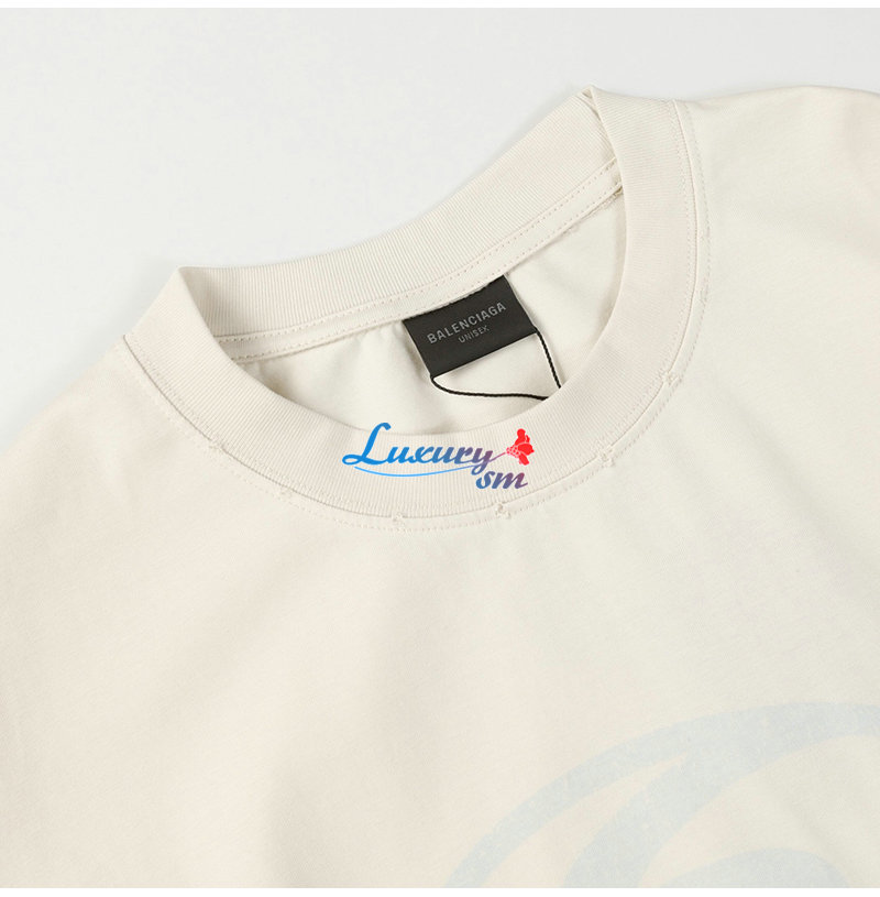 BALENCIAGA-062216 발렌시아가 아이보리 프린트 장식 티셔츠 남여공용