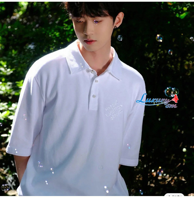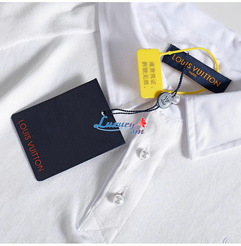 LOUIS VUITTON-07073 루이비통 화이트 아플리케 장식 폴로 티셔츠 남여공용