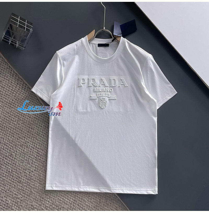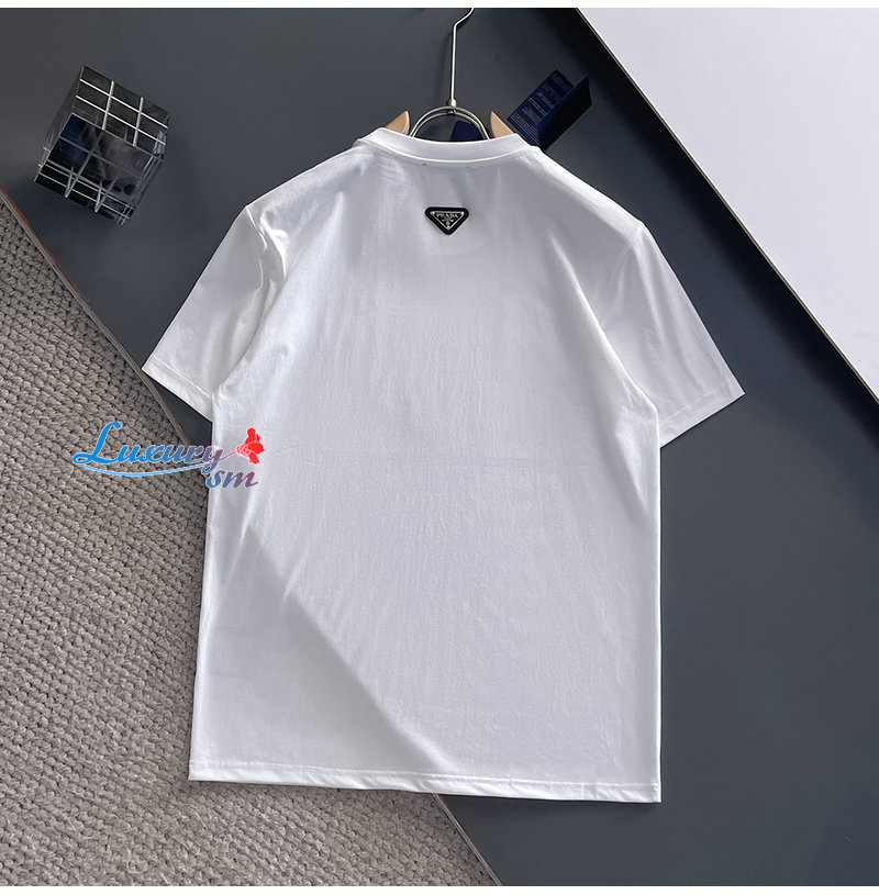 PRADA-07214 프라다 화이트 트라이앵글 로고 티셔츠 남성용