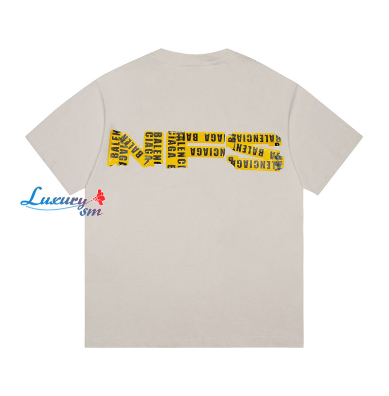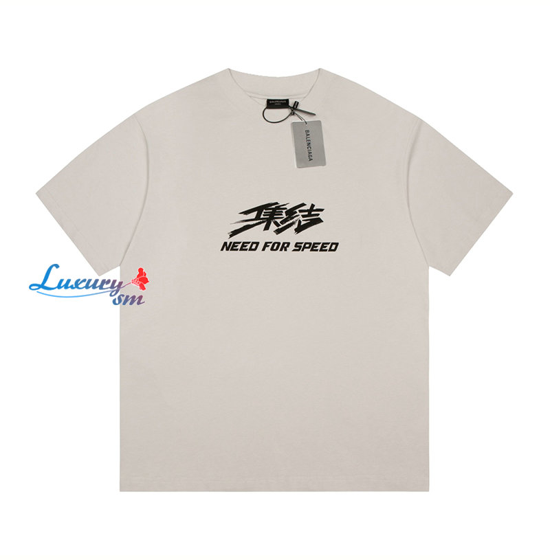 BALENCIAGA-07302 발렌시아가 라이트 그레이 프린트 장식 티셔츠 남여공용