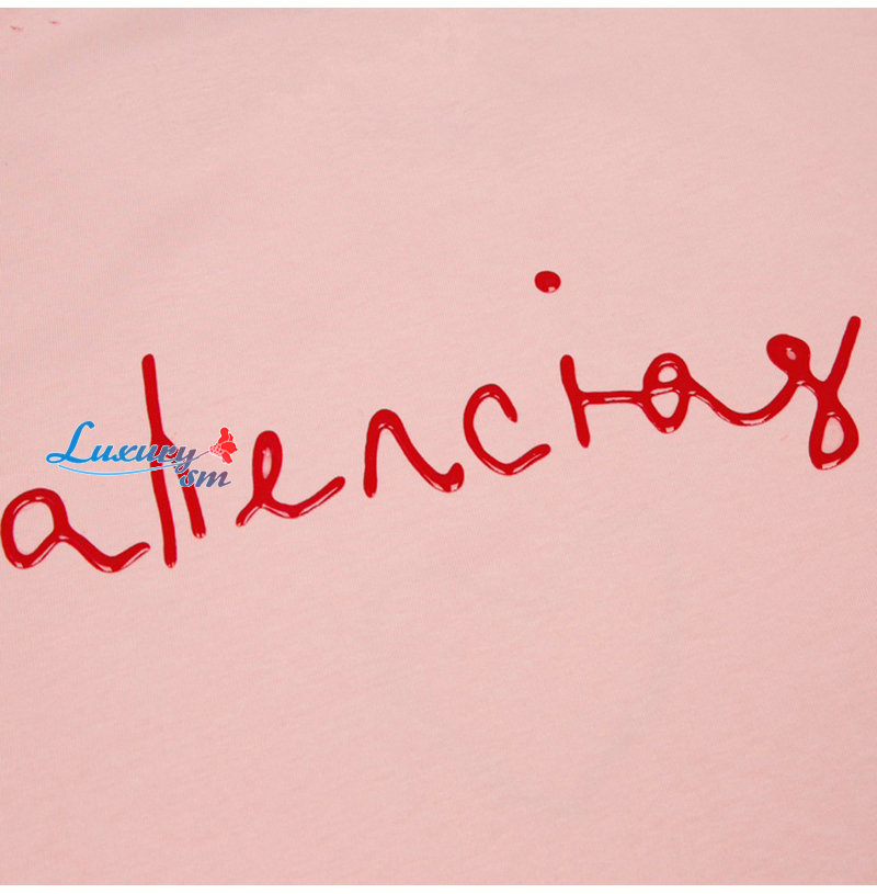 BALENCIAGA-07304 발렌시아가 핑크 프린트 장식 티셔츠 남여공용