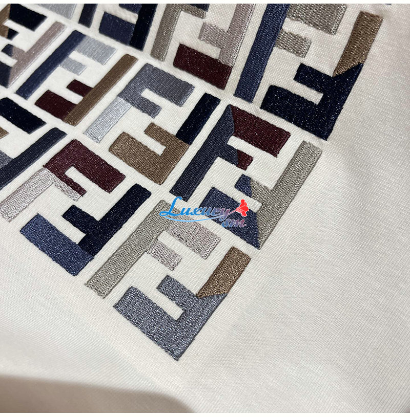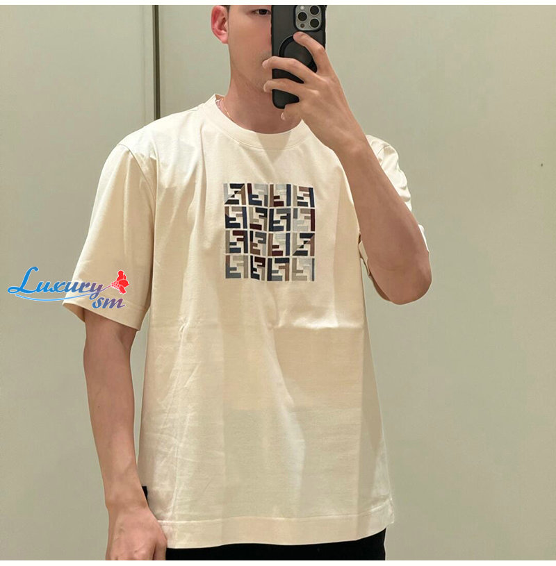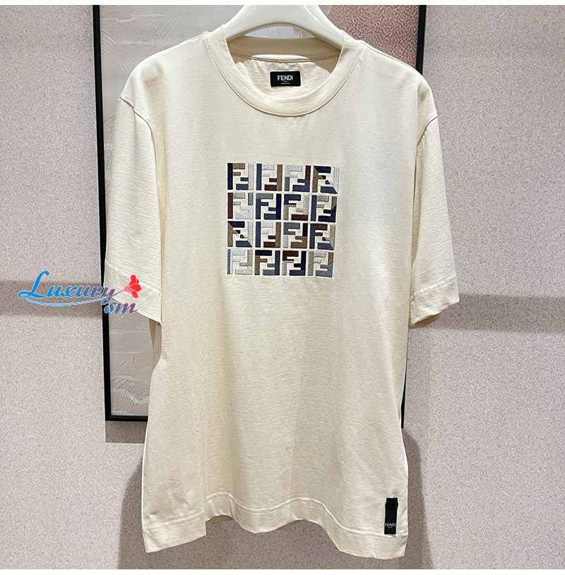 FENDI-07302 펜디 화이트 FF 아플리케 장식 티셔츠 남여공용