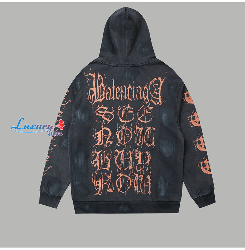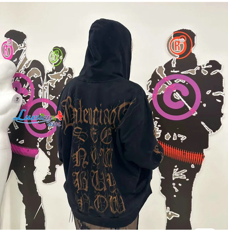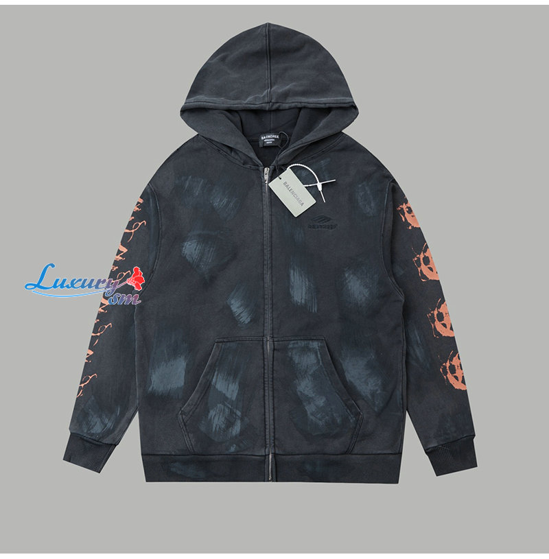 BALENCIAGA-08302 발렌시아가 블랙 프린트 장식 후드 재킷 남여공용