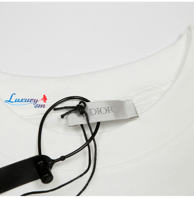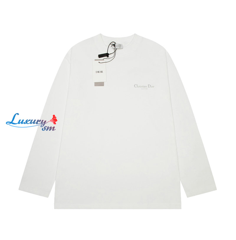 DIOR-09027 디올 화이트 프린트 장식 긴팔 티셔츠 남여공용