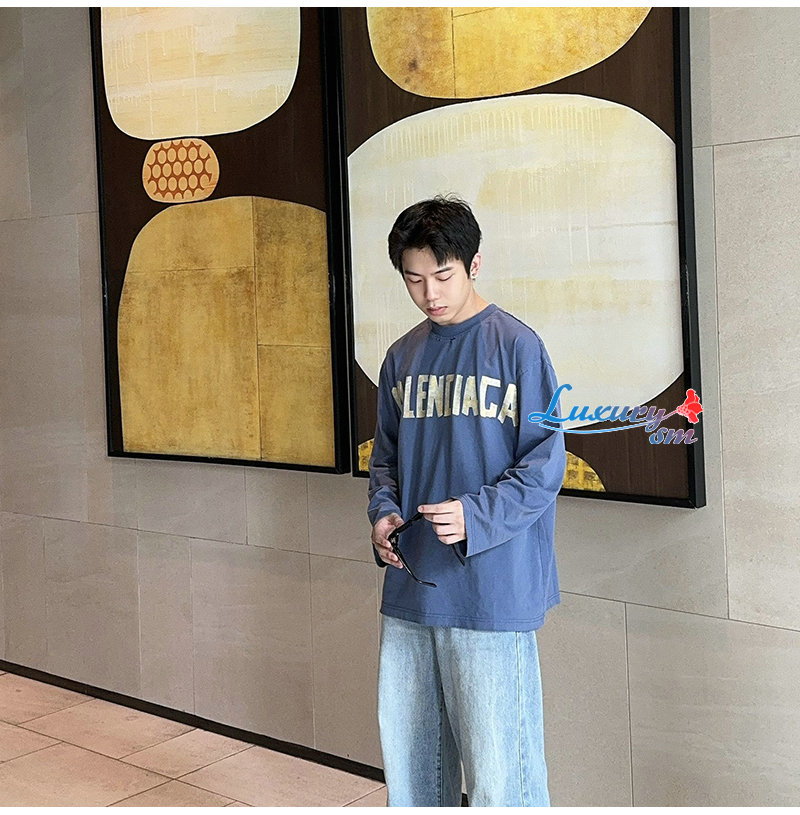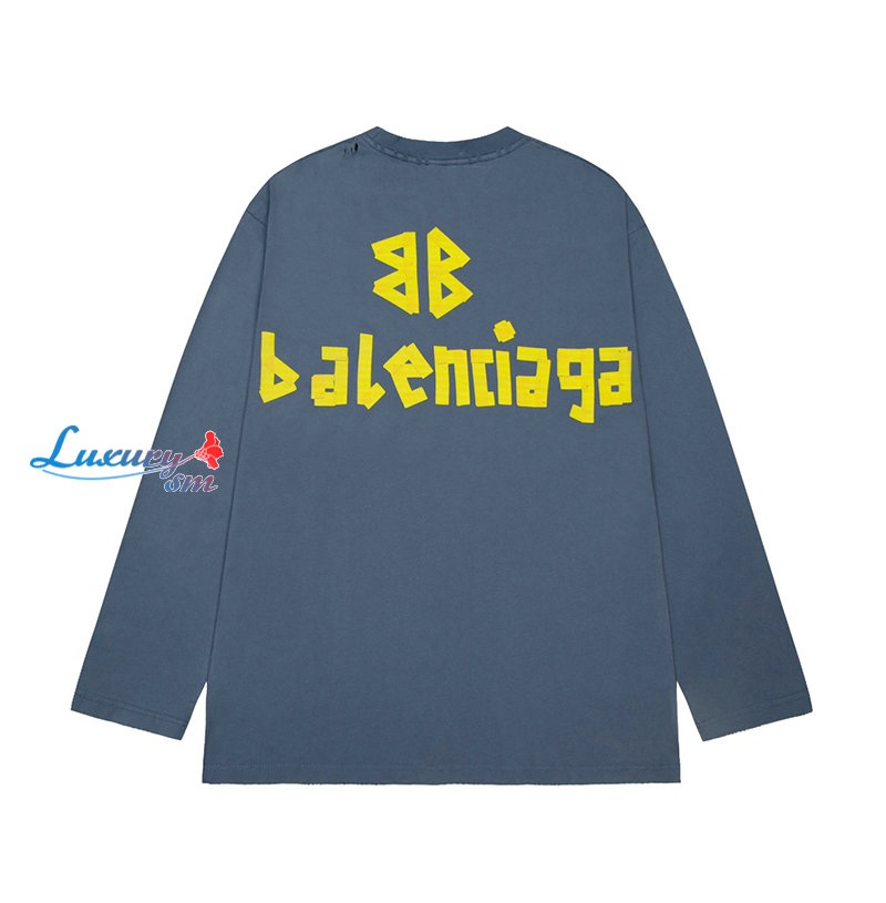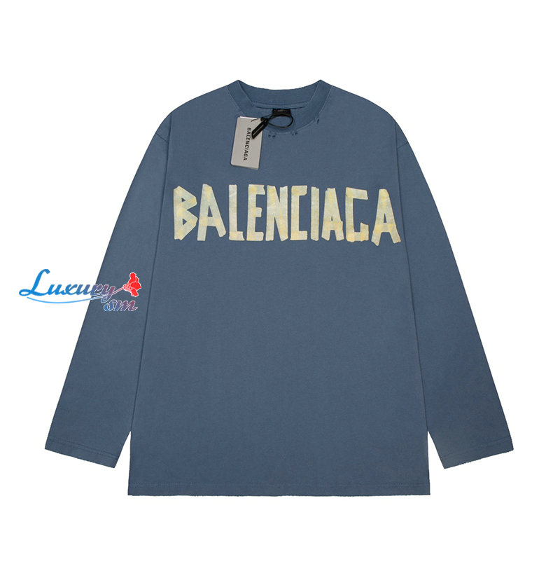 BALENCIAGA-09023 발렌시아가 블루 코튼 빈티지 긴팔 티셔츠 남여공용