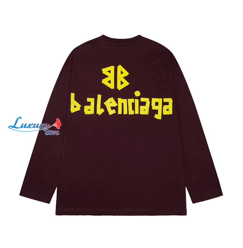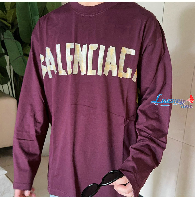 BALENCIAGA-09024 발렌시아가 버건디 코튼 빈티지 긴팔 티셔츠 남여공용