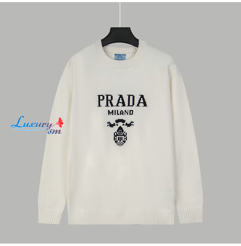 PRADA-112113 프라다 화이트 니트 코튼 스웨터 남여공용