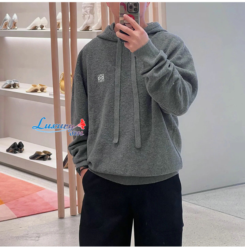 LOEWE-12177 로에베 그레이 니트 코튼 후드