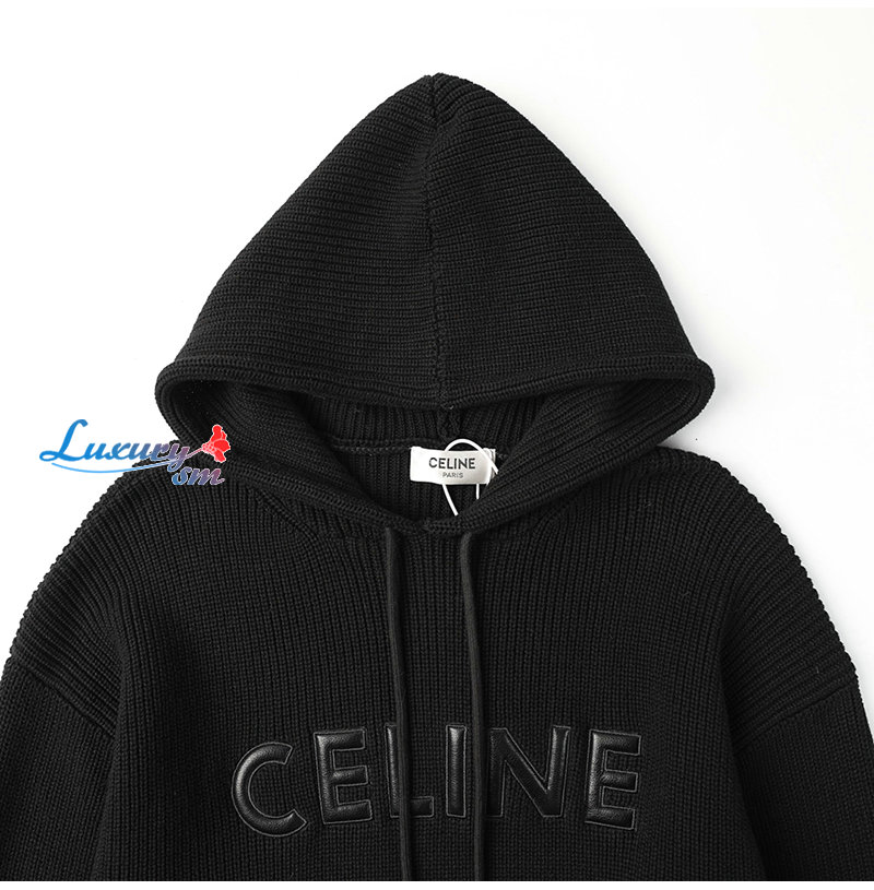 CELINE-12179 셀린느 블랙 아플리케 장식 후드 스웨터 남여공용