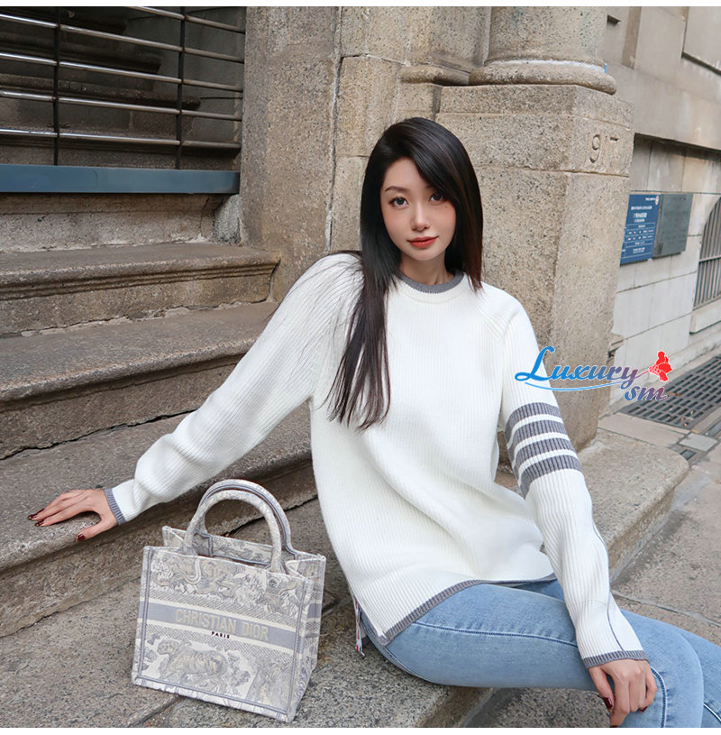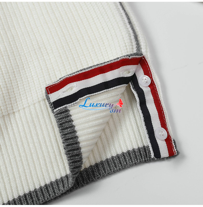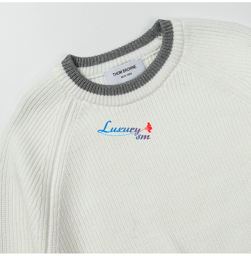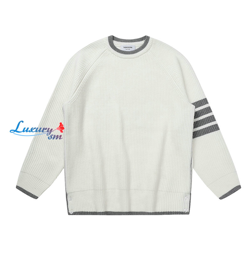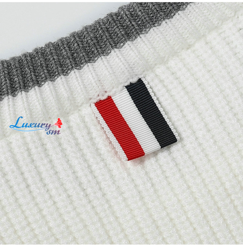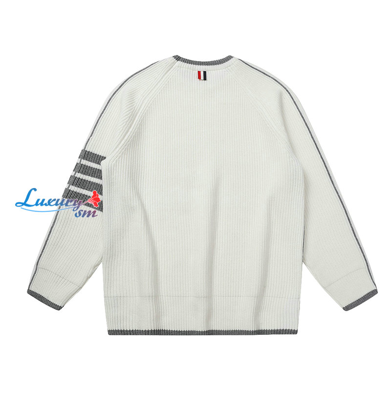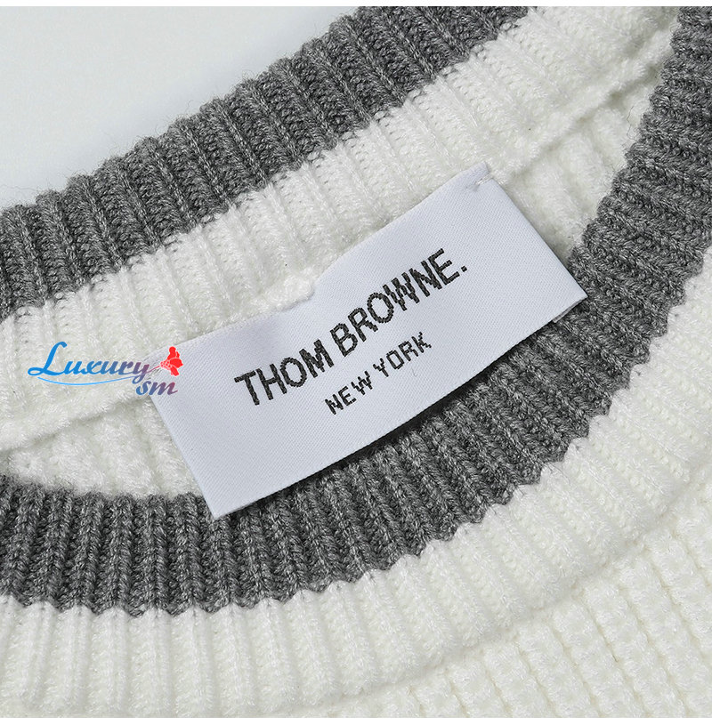 THOM BROWNE-12248 톰 브라운 화이트 스트라이프 장식 스웨터 남여공용