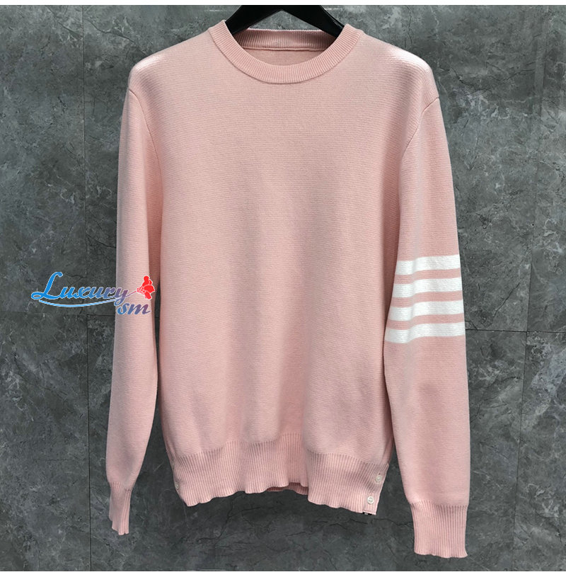 THOM BROWNE-010812 톰 브라운 라이트 핑크 스트라이프 장식 스웨터 남여공용