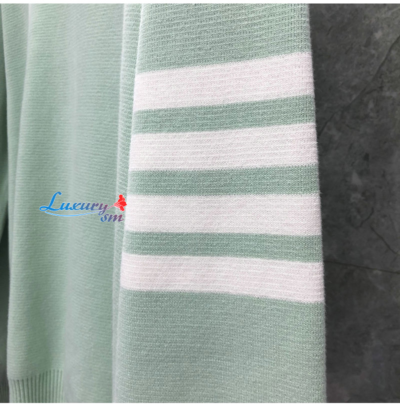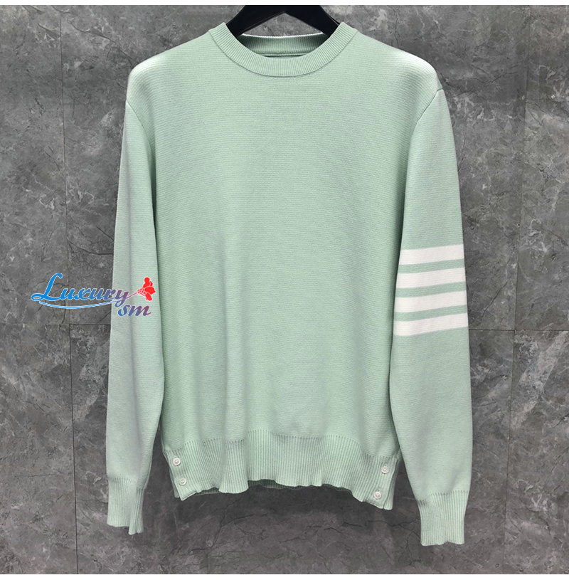 THOM BROWNE-010813 톰 브라운 민트 그린 스트라이프 장식 스웨터 남여공용