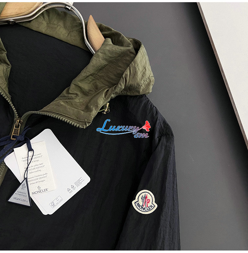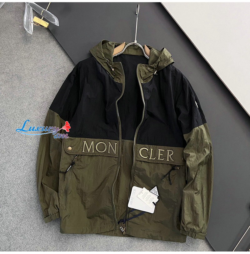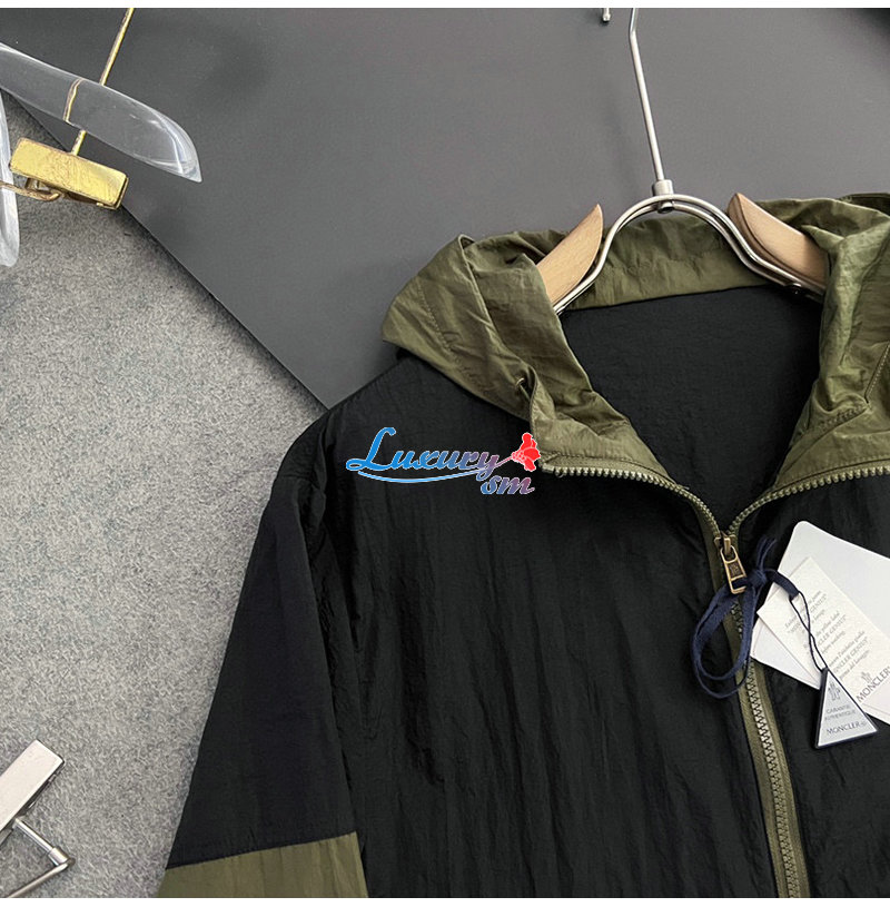 MONCLER-02198 몽클레어 카키/블랙 아플리케 장식 바람막이 후드 재킷 남성용