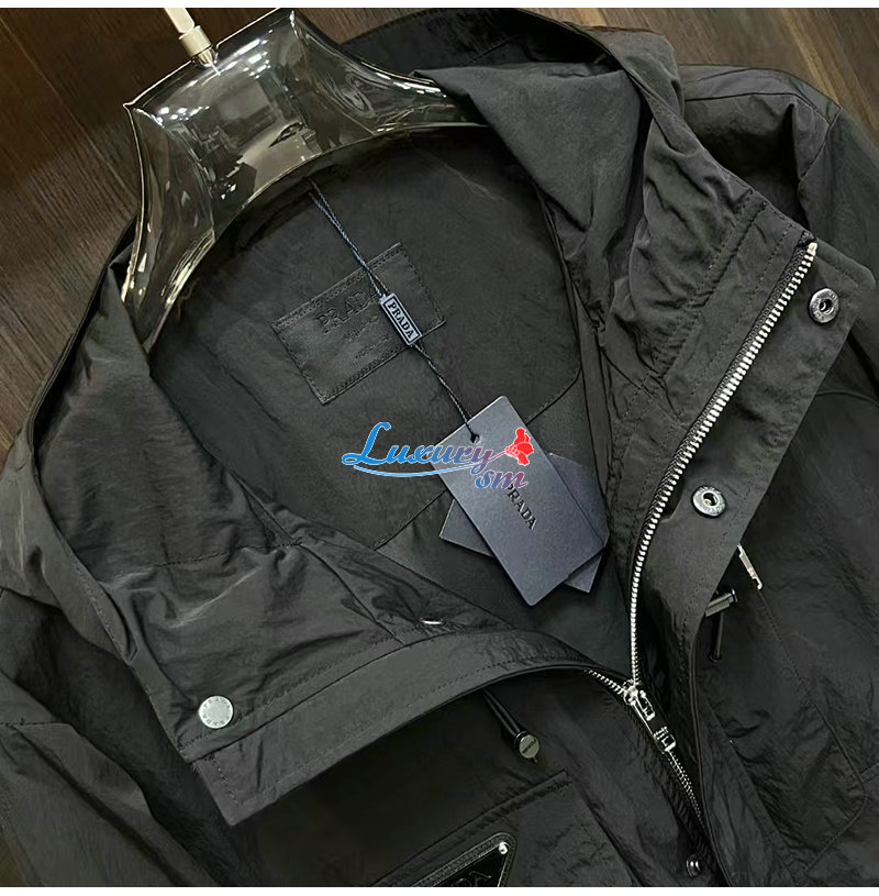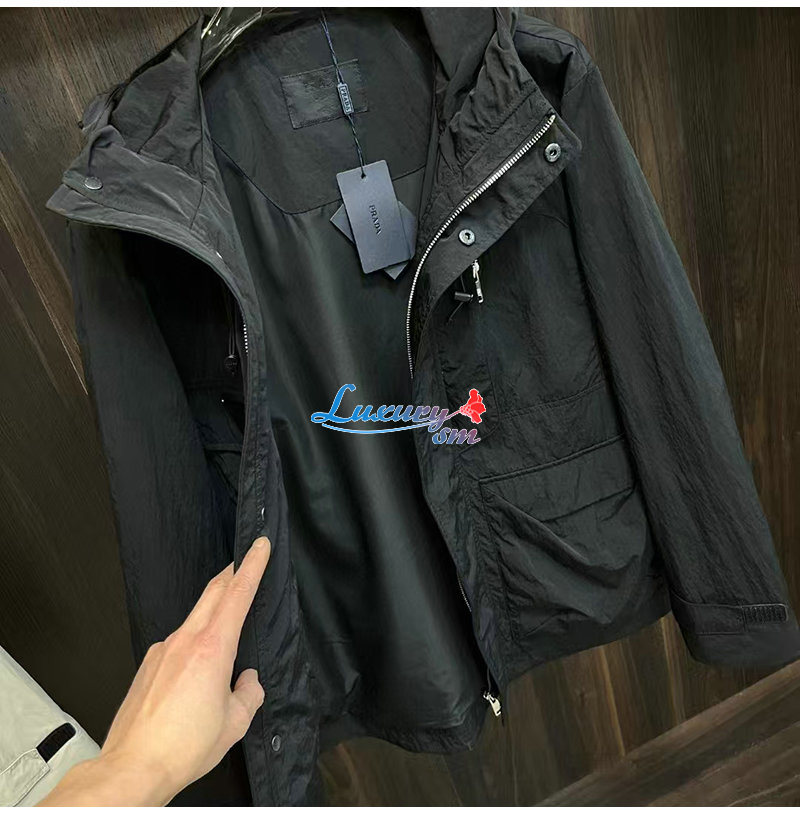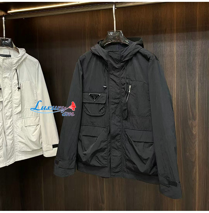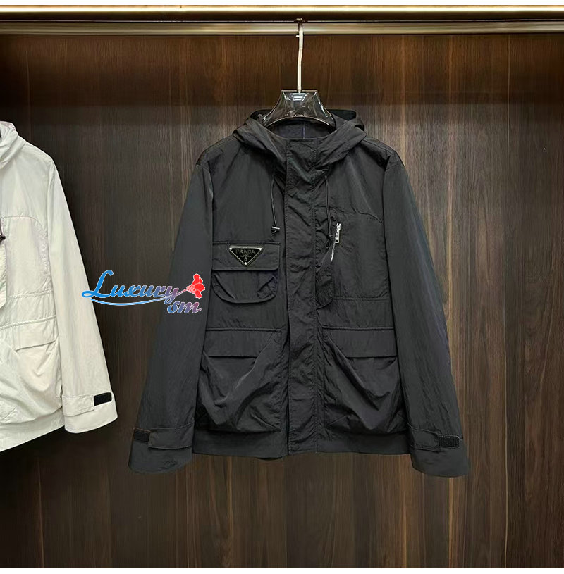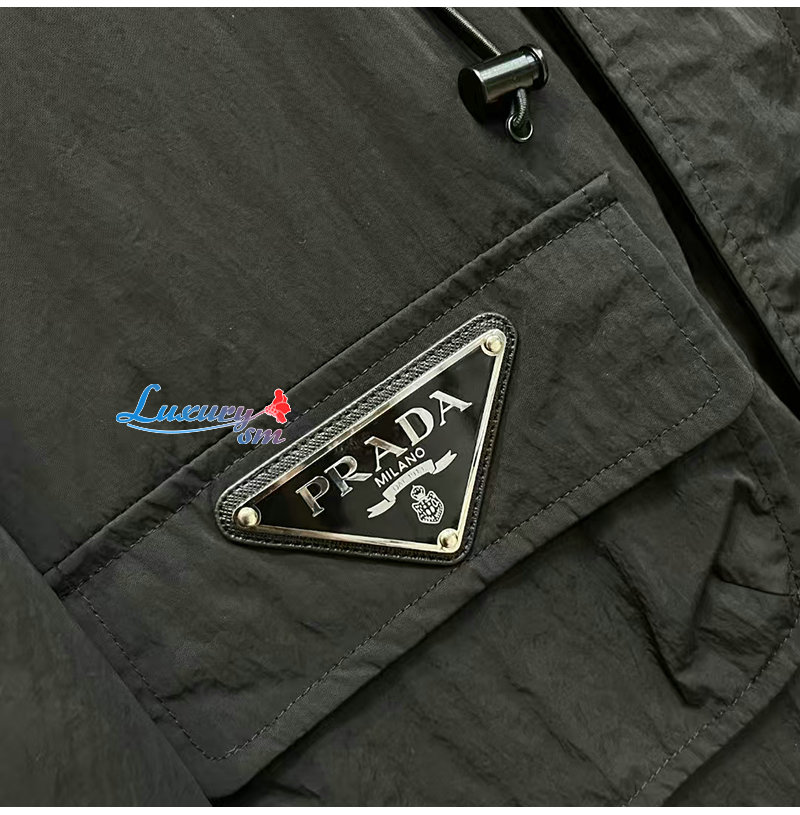 PRADA-02092 프라다 블랙 트라이앵글 로고 바람막이 후드 재킷 남성용