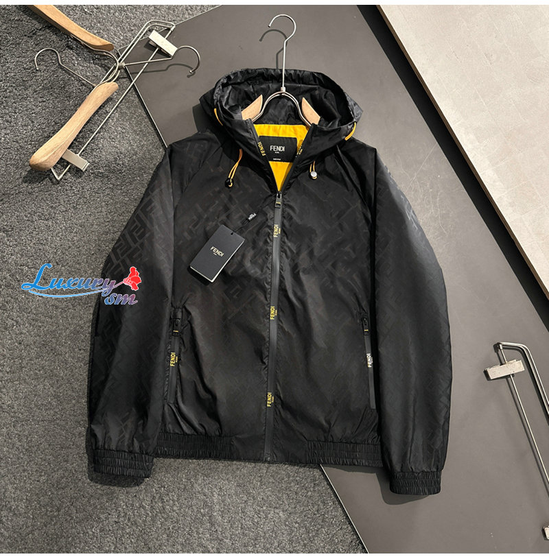 FENDI-02222 펜디 블랙 FF 나일론 바람막이 후드 재킷 남성용