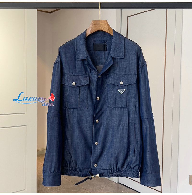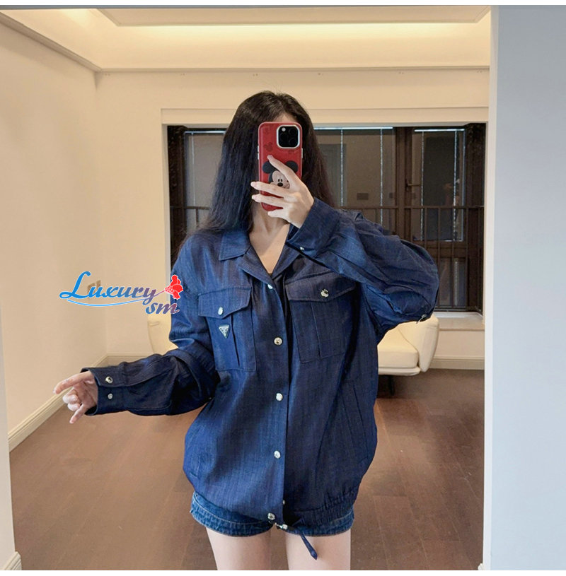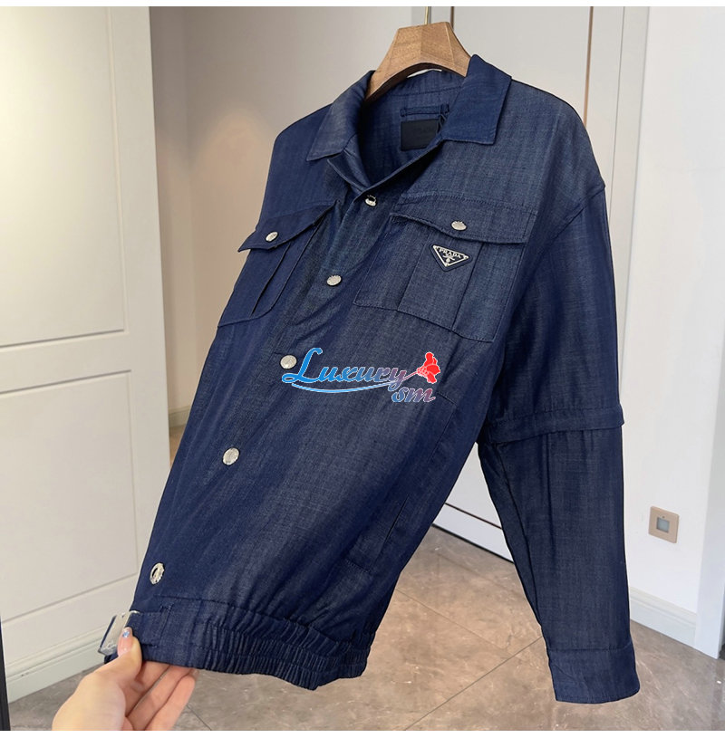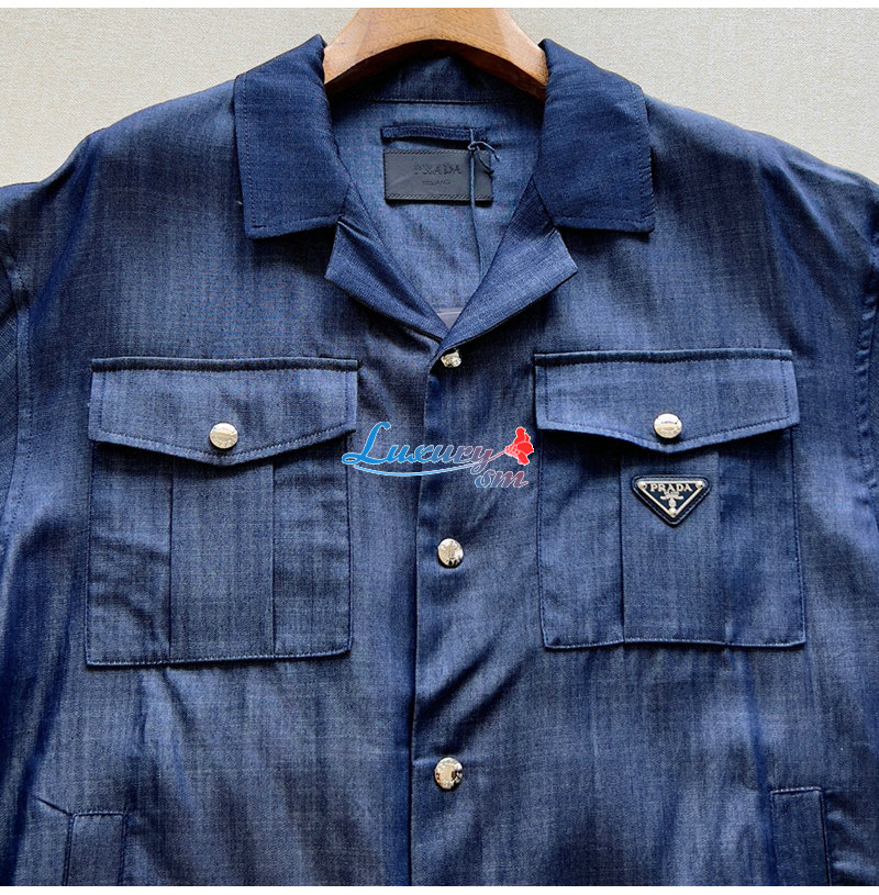 PRADA-03109 프라다 블루 트라이앵글 로고 데님 셔츠 남여공용