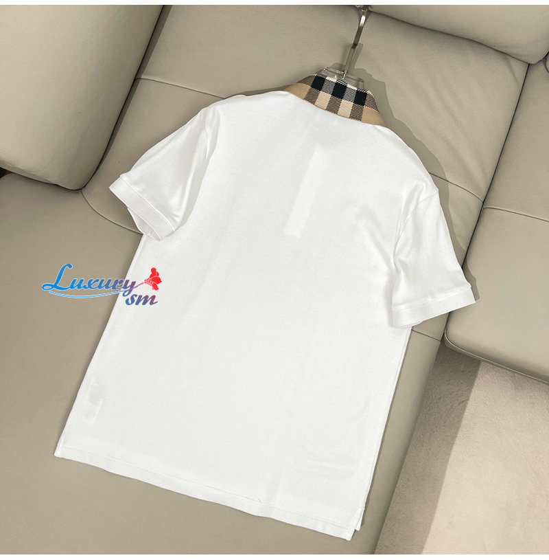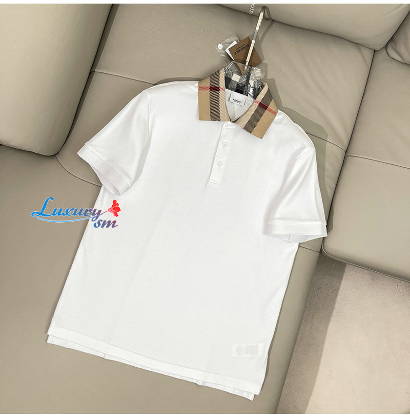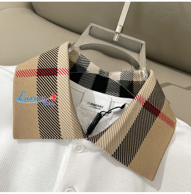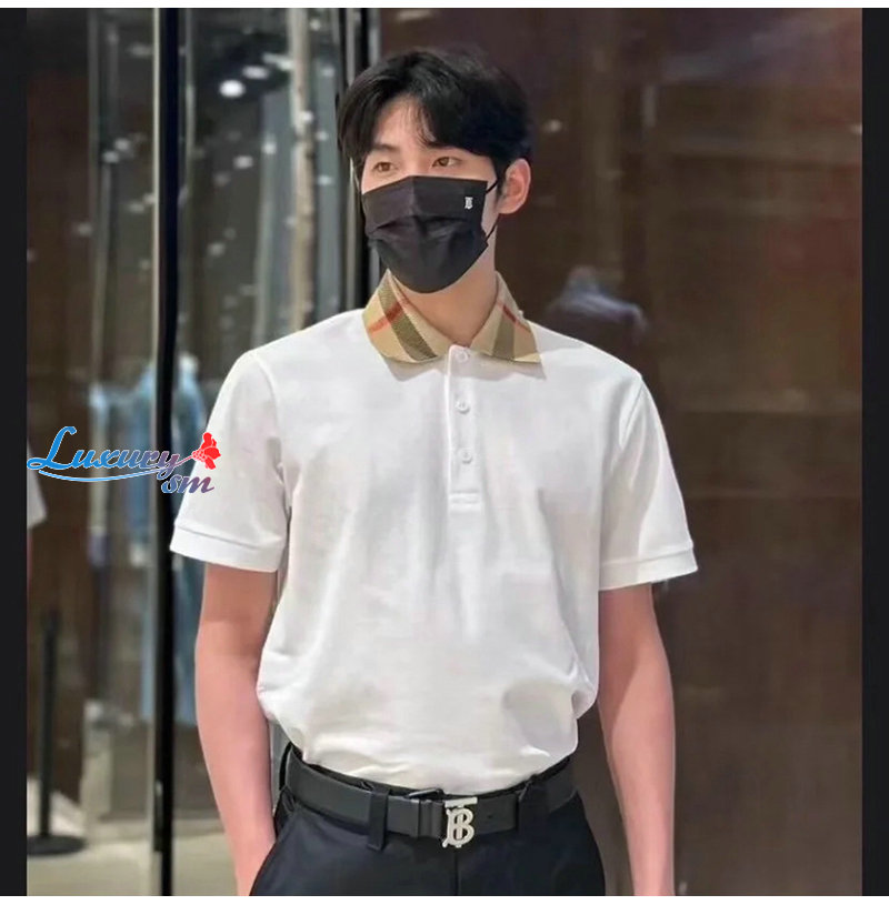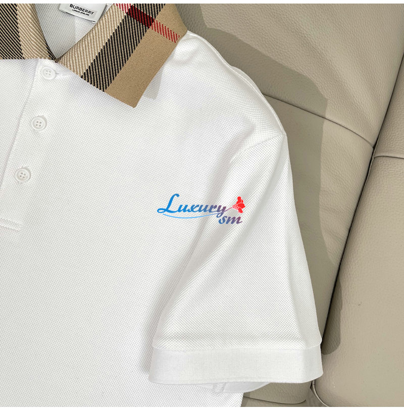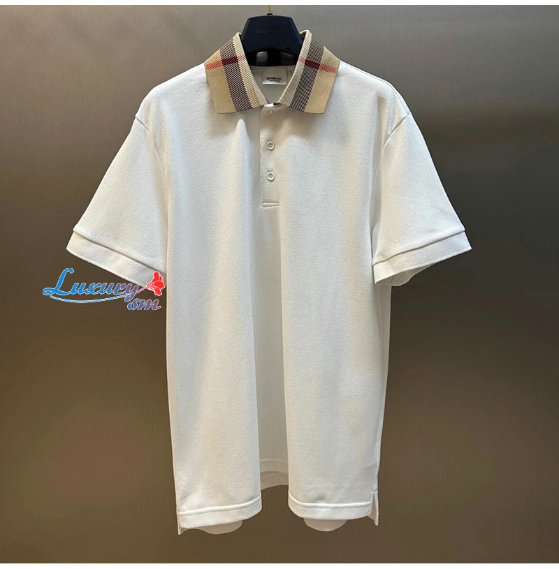 BURBERRY-03177 버버리 화이트 체크 디테일 폴로 티셔츠 남성용
