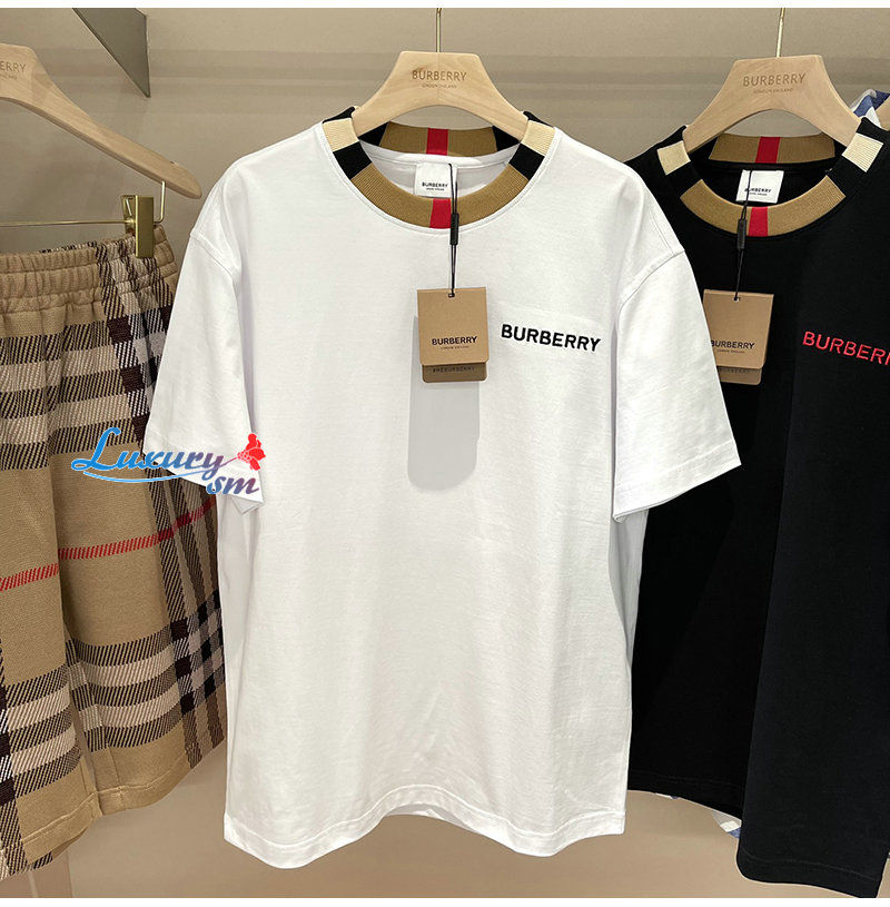 BURBERRY-03202 버버리 화이트 체크 디테일 티셔츠 남여공용