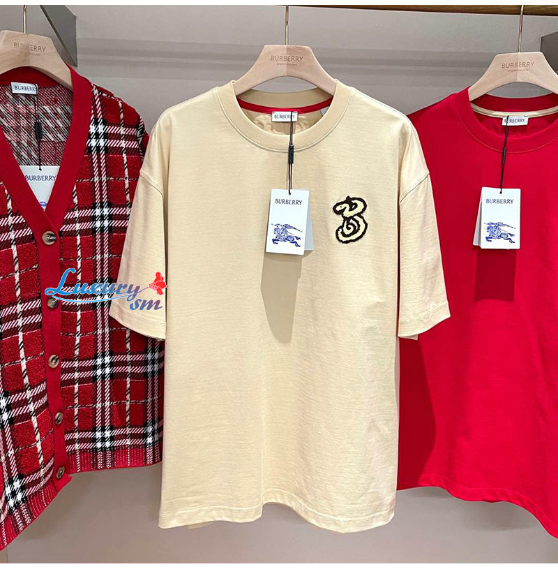 BURBERRY-81013961 버버리 레드 B 스네이크 코튼 티셔츠 남여공용